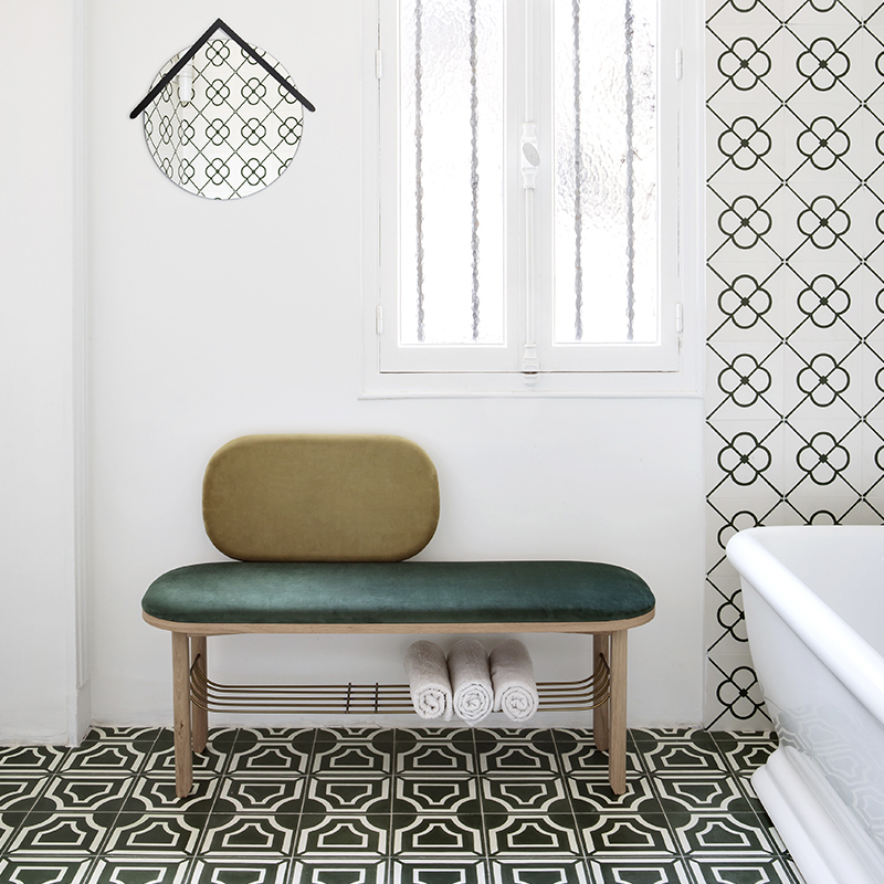 Eustache est un banc d’appoint en chêne naturel dessiné par Margaux Keller pour HARTÔ. L’assise élégante en velours cache un panier en métal effet laiton qui structure le modèle et apporte un rangement d’appoint. Eustache fait preuve de subtilité dans son design : ses pieds taillés à la façon d’une ballerine sur demi-pointes ou son dossier tout en rondeur, lui confèrent une modernité qui traverse les époques, à la façon d’un jeune dandy Moustachu de Proust ou Baudelaire... Ce banc rembourré Harto est parfait dans l'entrée.