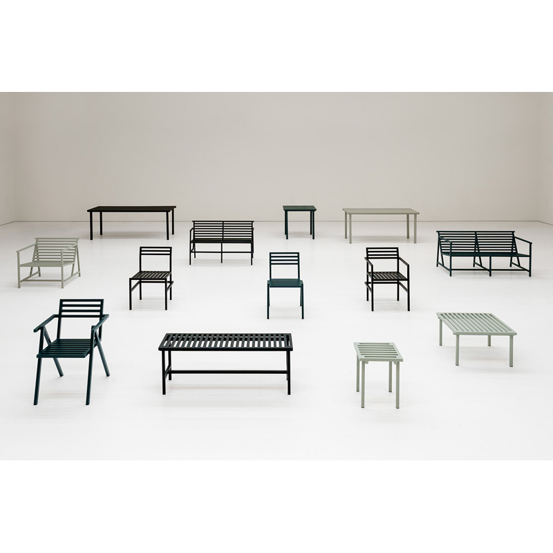 19 Outdoors est une collection de mobilier pour l’extérieur qui s’inspire du projet caritatif des Butterfield Brothers 19 Chairs. Editées par la marque Nine, Toutes les pièces de la collection possèdent un design unique, mais sont unifiées par le matériau, les couleurs et les proportions des extrusions d’aluminium qui définissent la famille. Tous les meubles de la collection 19 Outdoors s’associent donc très bien ensemble, et les couleurs proposées se marient parfaitement ensemble. La gamme 19 Outdoors inclut des chaises, des bancs, un fauteuil, un tabouret, un repose-pied et des tables de repas. Toutes ces pièces conviennent aussi bien à une utilisation dans les espaces domestiques que dans les environnements collectifs, d’un petit balcon à une terrasse de restaurant.