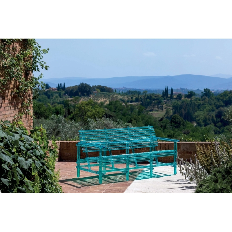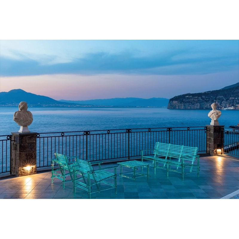 Dessinée par Jacopo Foggini pour la marque Edra, A'mare est une collection de meubles outdoor composée d'une chaise, d'un fauteuil, d'un banc, d'un bain de soleil, d'une table basse et de tables de repas. A travers leurs reflets magiques, la mer et l’eau deviennent les acteurs principaux de l’espace étayé par ces éléments d’ameublement, autant de paysages synonymes de détente, confort et accueil. La collection A’mare Edra s’adapte à toutes les utilisations. Conçue pour durer dans le temps, son esthétique épurée consent notamment à la collection A’mare de s'intégrer aisément dans les espaces intérieurs. Toutes les pièces de la série A’mare sont fabriquées à la main avec des lattes en polycarbonate à la section volontairement irrégulière afin d’obtenir des surfaces hétérogènes perceptibles au toucher uniquement. Les différentes lattes sont assemblées selon une trame élémentaire à l'aide de vis spéciales.