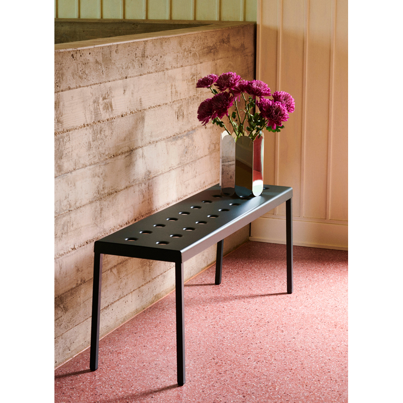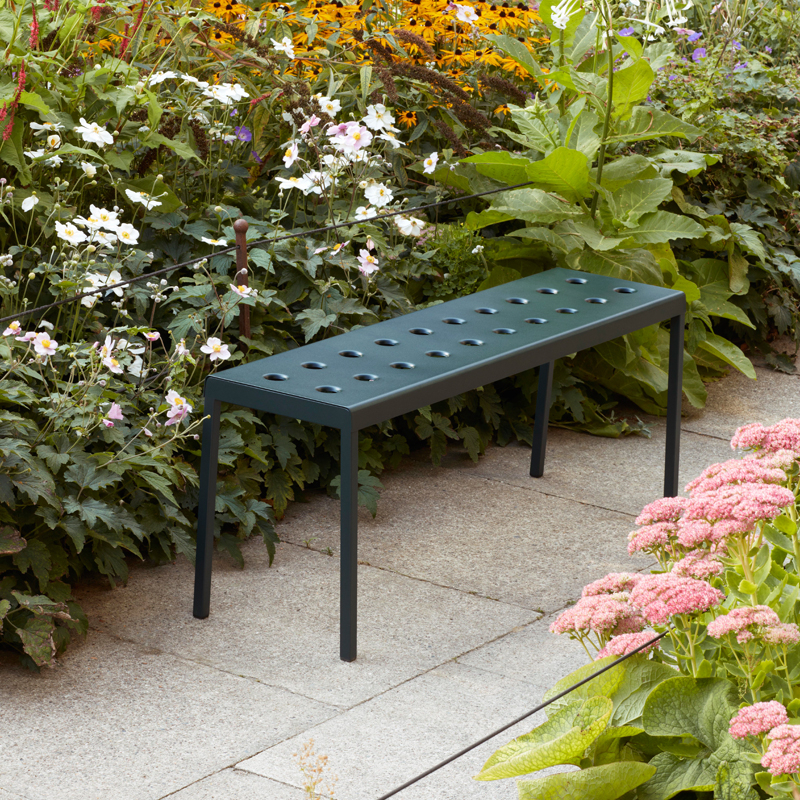 Balcony est une collection de mobilier pour extérieur conçue par les designers Ronan et Erwan Bouroullec pour la marque Hay. Le design carré est adouci par les trous et les bords arrondis, qui donnent non seulement à la collection une expression distinctive, mais aussi renforcent la construction. Toute la collection Balcony est réalisée en acier revêtu de poudre qui reçoit en plus un traitement contre la corrosion. Cette double finition permet une résistance et une durabilité optimale. Déclinée en plusieurs couleurs, la collection de meubles outdoor Balcony est parfaitement adaptée aux balcons, jardins et autres espaces extérieurs. La collection Balcony comprend des chaises et fauteuils empilables, un banc décliné en deux longueurs, une table de repas disponible en trois dimensions et une table basse.