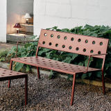 Balcony est une collection de mobilier pour extérieur conçue par les designers Ronan et Erwan Bouroullec pour la marque Hay. Le design carré est adouci par les trous et les bords arrondis, qui donnent non seulement à la collection une expression distinctive, mais aussi renforcent la construction. Le banc Balcony Lounge est réalisé en acier revêtu de poudre qui reçoit en plus un traitement contre la corrosion. Cette double finition permet une résistance et une durabilité optimale. Décliné en plusieurs couleurs, le banc Balcony Lounge est parfaitement adapté aux jardins et autres espaces extérieurs.