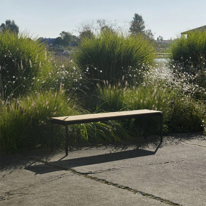 Célébration de la nature et de la matérialité, Ville de And Tradition est une collection de meubles pour l'extérieur combinant solidité et douceur. Le banc Ville AV28 a été conçu pour accompagner la table Ville AV26, mais constitue également une option de siège pour plusieurs personnes dans des maisons privées ou dans des lieux d'accueil. Le teck offre une surface chaleureuse et accueillante qui peut être huilée ou laissée non traitée selon les préférences de chacun.