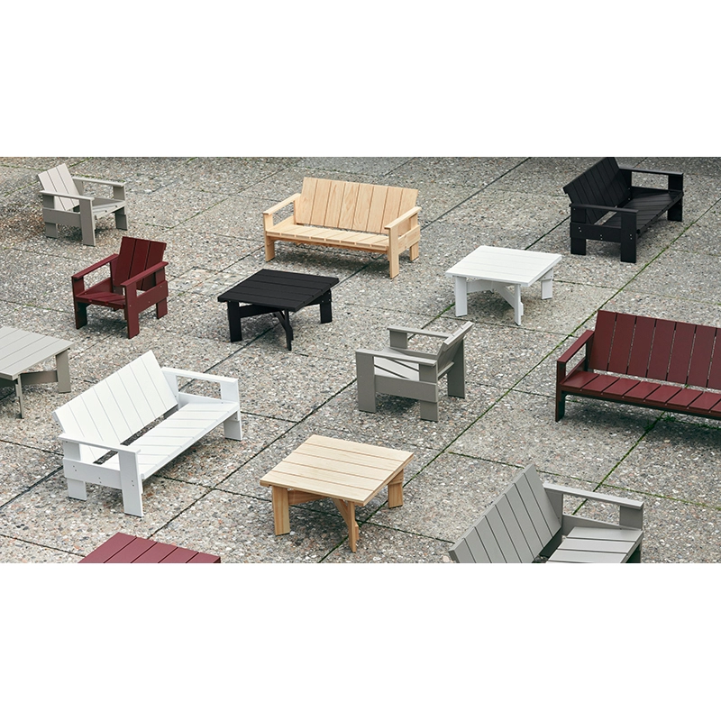 Conçue par Gerrit Rietveld en 1934, la collection Crate a été relancée dans le cadre d'une collaboration entre Rietveld Originals et Hay. Cette série de meubles épurés avait été dessinée à l'origine pour utiliser des surplus de caisses de transport en bois. Rééditée dans le respect du design original, le banc Crate Lounge est doté des mêmes proportions parfaitement équilibrées et de la même construction évidente pour minimiser les coûts de production et optimiser le processus d'assemblage. La simplicité et la conception spatiale de le banc Crate Lounge reflètent le style architectural du designer. Réalisé en pin massif et traité avec une laque d'extérieur à base d’eau, le banc Crate Lounge est idéal pour les espaces extérieurs tels que la terrasse, le jardin et le balcon.