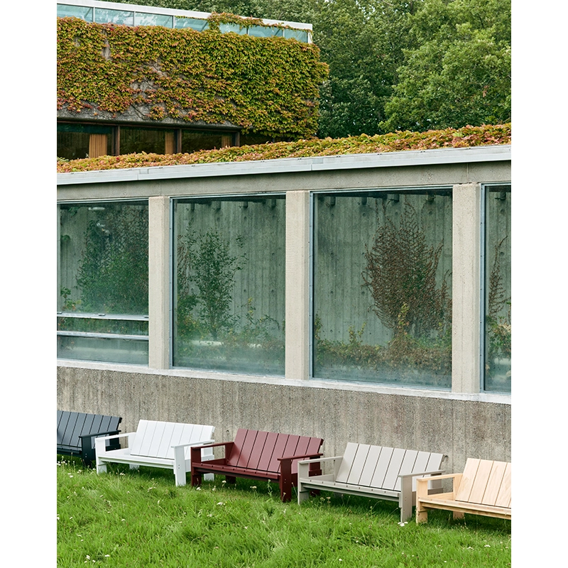 banc Crate Lounge reflètent le style architectural du designer. Réalisé en pin massif et traité avec une laque d'extérieur à base d’eau, le