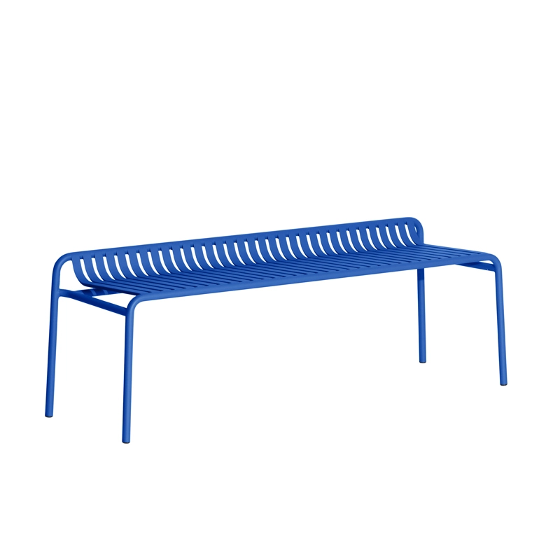 Avec Week-End, la marque française Petite Friture, pose son regard singulier sur l’été et propose avec le studio Brichet-Ziegler une approche graphique et contemporaine du mobilier de jardin. Celle-ci se joue d’un rythme de bandes horizontales et verticales posées avec habileté sur une structure aux lignes fortes. Les bandes de ce banc qui caractérisent la collection Week-End éditée par Petite Friture, sont réalisées dans des feuilles d’aluminium découpées au laser en une seule pièce et non en lattes assemblées, permettent la suppression de vis ou de soudures inconfortables. Le travail des lattes comme des rayures, souligne les pleins et les vides, affirmant l’identité de la collection. La collection Week-End est une gamme de mobilier outdoor complète. Les couleurs précises sélectionnées pour cette collection marquent seules ou en combinaison les lignes d’horizon d’un balcon, d’une terrasse ou d’un jardin. Ce banc est disponible en plusieurs couleurs comme le noir, jaune, vert jade … La mise en couleurs de la collection Week-end, de Petite Friture, en peinture poudre époxy anti-UV grainée garantit un maintien impeccable des teintes au cours du temps. Le banc design proposée par Petite Friture, a été conçu avec l’obsession de tirer le meilleur parti des matériaux et des techniques de réalisation à la disposition des designers. Réalisée en aluminium, matériau sélectionné pour sa légèreté et sa résistance aux intempéries, la collection Week-End allie confort esthétique et sens pratique. En effet, cette collection est résolument pensée autour d’une utilisation pratique car toutes les assises sont empilables.