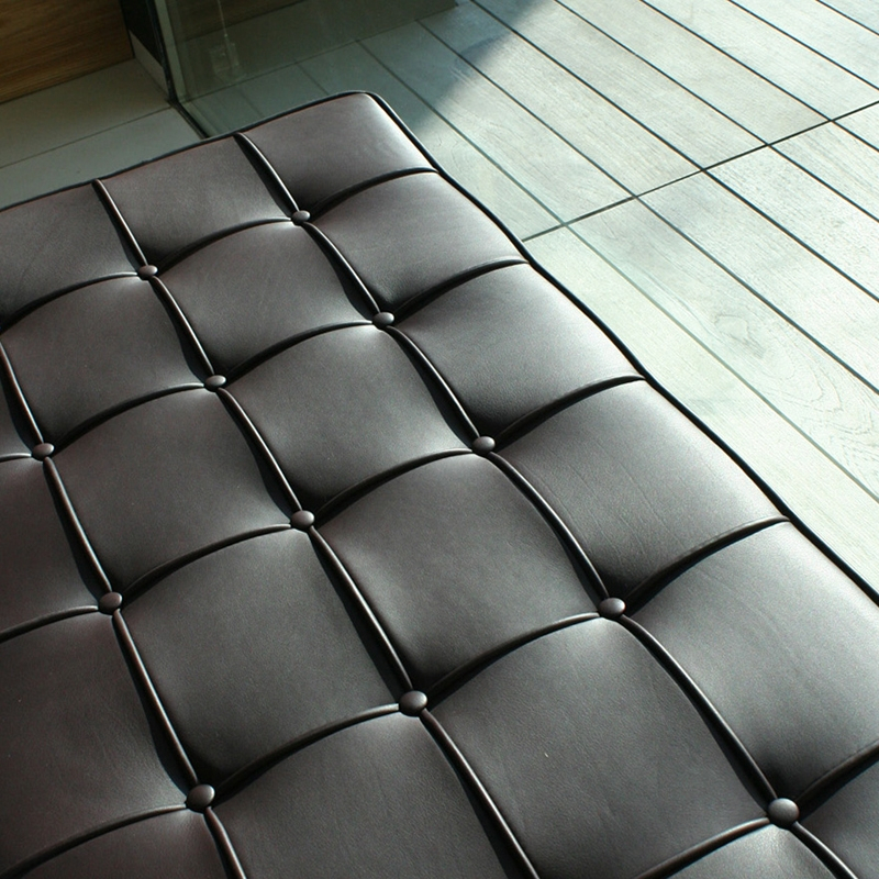 Dessinée par Florence Knoll en 1954, cette banquette fait partie de la collection qui porte son nom. Elle s'intègre parfaitement dans les espaces publics mais aussi privés, dans un salon, ou dans une chambre. Le logo Knollstudio ainsi que la signature de sa créatrice sont gravés sur la base de la structure. Les pieds sont en acier à section carrée, soudés et finition chrome poli brillant avec une assise constituée d'un capitonnage de carrés de cuir. Très élégant, ce banc invite vos convives à s'y asseoir délicatement.