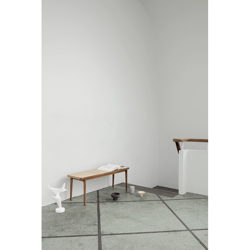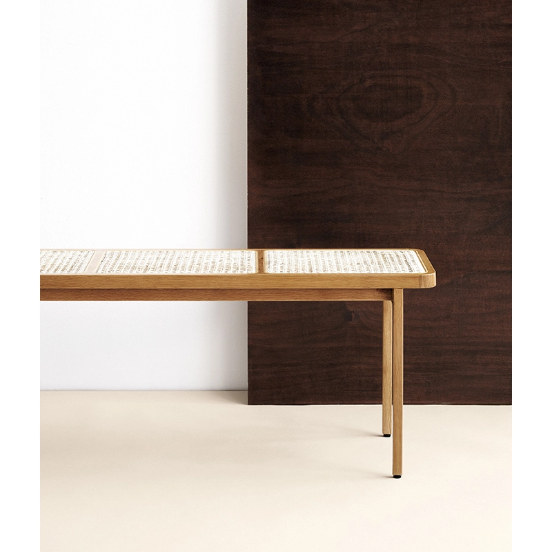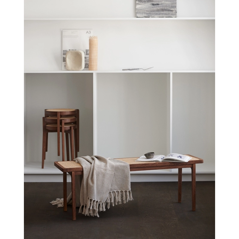 Le banc Le Roi de Norr11, inspiré par la royauté française, est constitué d'une structure en chêne massif et d'une assise en cannage. Beau, intemporel et fonctionnel, il est conçu pour fonctionner aussi bien comme une table basse dans un salon, qu'en banc dans une entrée ou une chambre.