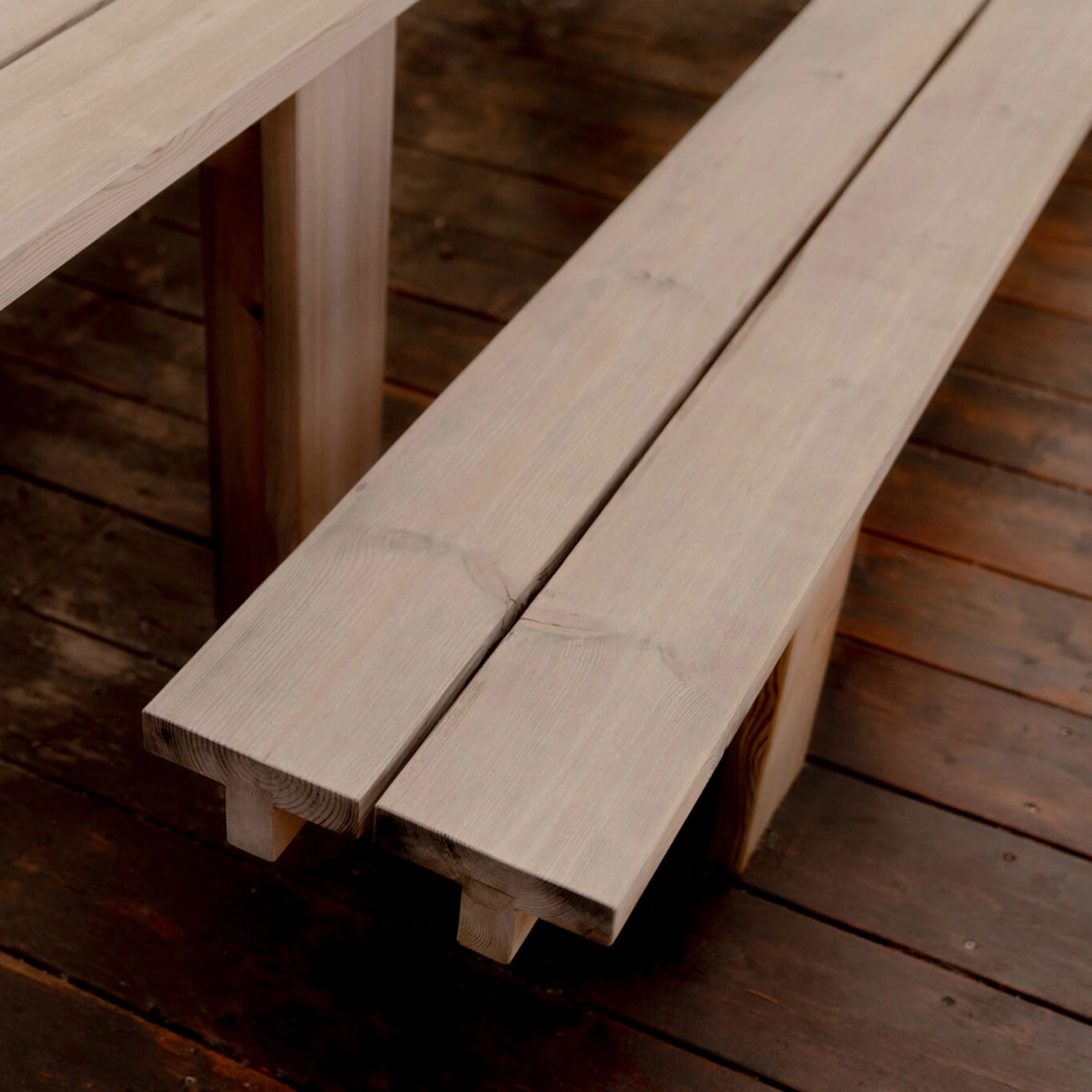 Pensé comme le complément idéal de la table de repas extérieure Osa, le banc Osa de Vaarnii incarne une approche fonctionnelle et rigoureuse du design. Imaginé par Henrik Tjaerby, il repose sur une structure modulaire astucieuse, conçue à partir d’un profil en T standardisé et d’un nombre minimal de composants. Cette conception permet non seulement une grande liberté dimensionnelle, mais garantit aussi une stabilité remarquable, même sur de longues portées. Fabriqué en pin finlandais traité thermiquement selon une technique innovante, le banc Osa est conçu pour durer. Sa résistance aux intempéries, au vent et aux conditions extérieures extrêmes en fait une pièce idéale pour un usage en plein air, sans compromis sur la solidité ni sur la simplicité des formes. Avec son langage visuel sobre et affirmé, le banc Osa allie ingéniosité technique et esthétique brute, fidèle à l’esprit fonctionnel de Vaarnii .