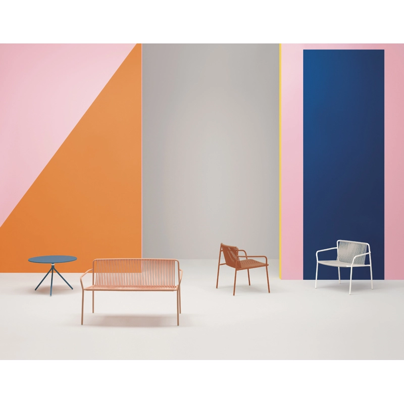 Editée par Pedrali, Tribeca est une réinterprétation moderne des chaises de terrasse classiques des années 60 en acier entrelacé. Le banc lounge Tribeca est doté d’une structure en tube Ø20mm peint pour l'extérieur. Le dossier et l’assise de Tribeca sont créés à partir d’un entrelacement de fil de PVC renforcé en Nylon. La technique et les matériaux utilisés ont permis de proposer un siège à la fois confortable et léger. Spécialement conçu pour une utilisation en extérieur, le banc lounge Tribeca de Pedrali peut être accompagné par la version fauteuil pour créer un ensemble sur une terrasse.