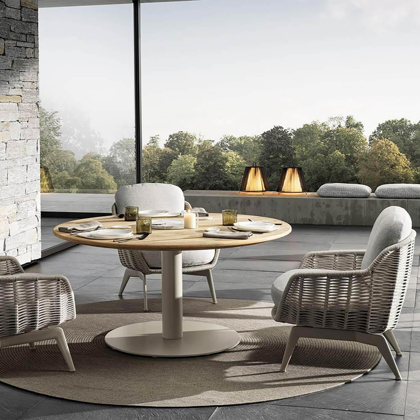Épurée dans sa forme et essentielle dans son design, la table d'extérieur occasion Bellagio exprime une approche contemporaine de la vie en plein air. Dotée d’un plateau en teck massif naturel, elle révèle la chaleur et la richesse du bois, soigneusement travaillée pour mettre en valeur sa beauté organique et sa durabilité. Le plateau repose sur une structure métallique blanche en acier inoxydable peint, offrant un contraste net et garantissant stabilité, résistance et un look architectural épuré. Cette combinaison de matériaux reflète un dialogue parfait entre nature et structure, idéale pour les terrasses privées comme pour les environnements hôteliers haut de gamme. Que ce soit pour des repas en plein air ou pour recevoir avec élégance, la table d'extérieur Bellagio allie fonctionnalité, design intemporel et sophistication des matériaux, devenant ainsi la pièce maîtresse de tout espace outdoor.