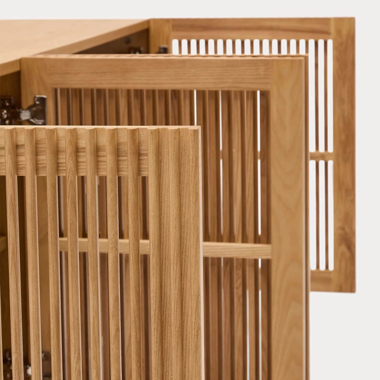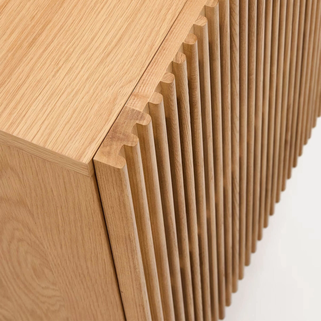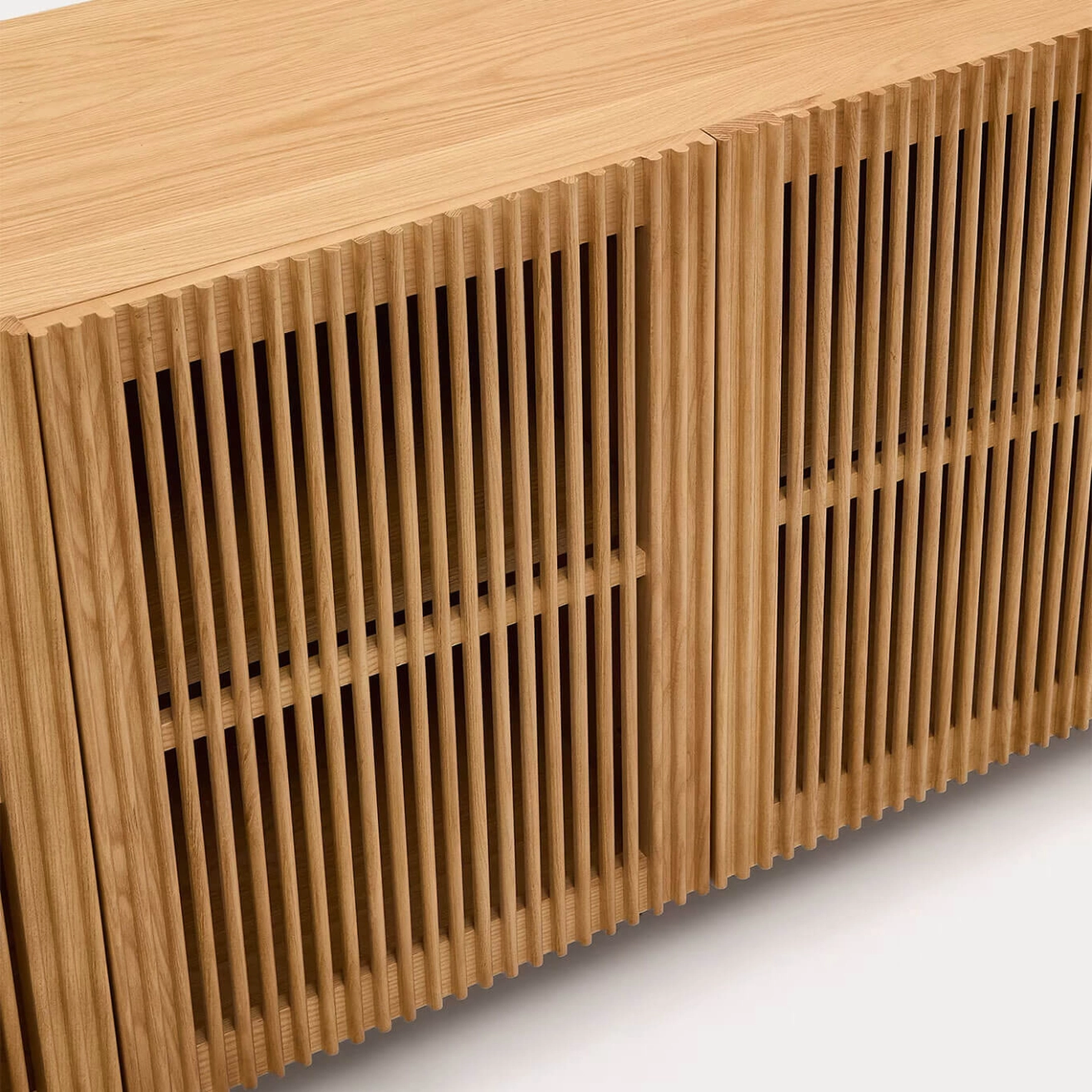 Kave Home. La collection Beyla réinterprète la chaleur naturelle du bois avec une esthétique contemporaine, combinant lignes verticales, texture et profondeur. Le