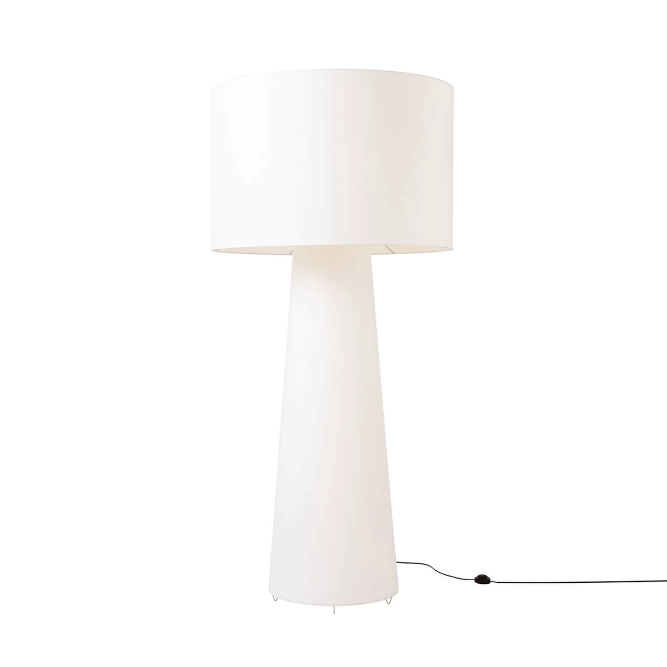 Conçue par Marcel Wanders pour Cappellini, Big Shadow est un lampadaire à lumière diffuse, disponible en différentes tailles et hauteurs. Le designer de Big Shadow reflète fidèlement la vision du designer : une alliance de matériaux et de techniques innovantes avec des styles et des archétypes traditionnels. L'inspiration pour ces lampes vient des classiques lampes de table à abat-jour, revisitées ici dans un esprit contemporain, le tissu recouvrant non seulement la partie supérieure de la lampe, mais aussi la base, afin de créer une source de lumière chaleureuse et confortable. Edité par Cappellini, le lampadaire Big Shadow présente une structure en tige métallique chromée avec un abat-jour en polyamide blanc et viscose.