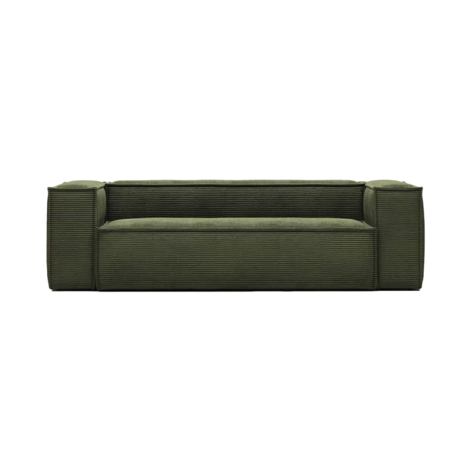 Kave Home. Cette collection iconique se distingue par ses proportions généreuses, ses lignes structurées et ses pieds invisibles qui apportent une sensation de légèreté visuelle tout en préservant une grande stabilité. Tapissé d’un épais velours côtelé au toucher très doux, il offre une texture enveloppante et une excellente résistance à l’abrasion et à la lumière. Son assise moyenne à ferme combine un noyau en mousse souple de 30 kg/m³ avec une couche de mousse dure de 20 kg/m³ et une couche supérieure de mousse souple de 20 kg/m³, assurant un équilibre idéal entre confort et soutien, tandis que le dossier, composé d’un noyau en mousse dure de 20 kg/m³ recouvert de mousse souple de 20 kg/m³, garantit un maintien optimal. Le tissu est certifié OEKO-TEX® STANDARD 100 et la structure interne en pin bénéficie de la certification FSC Mix Credit, issue de forêts gérées de manière responsable. Fabriqué localement en Europe afin de réduire les émissions de CO₂, le