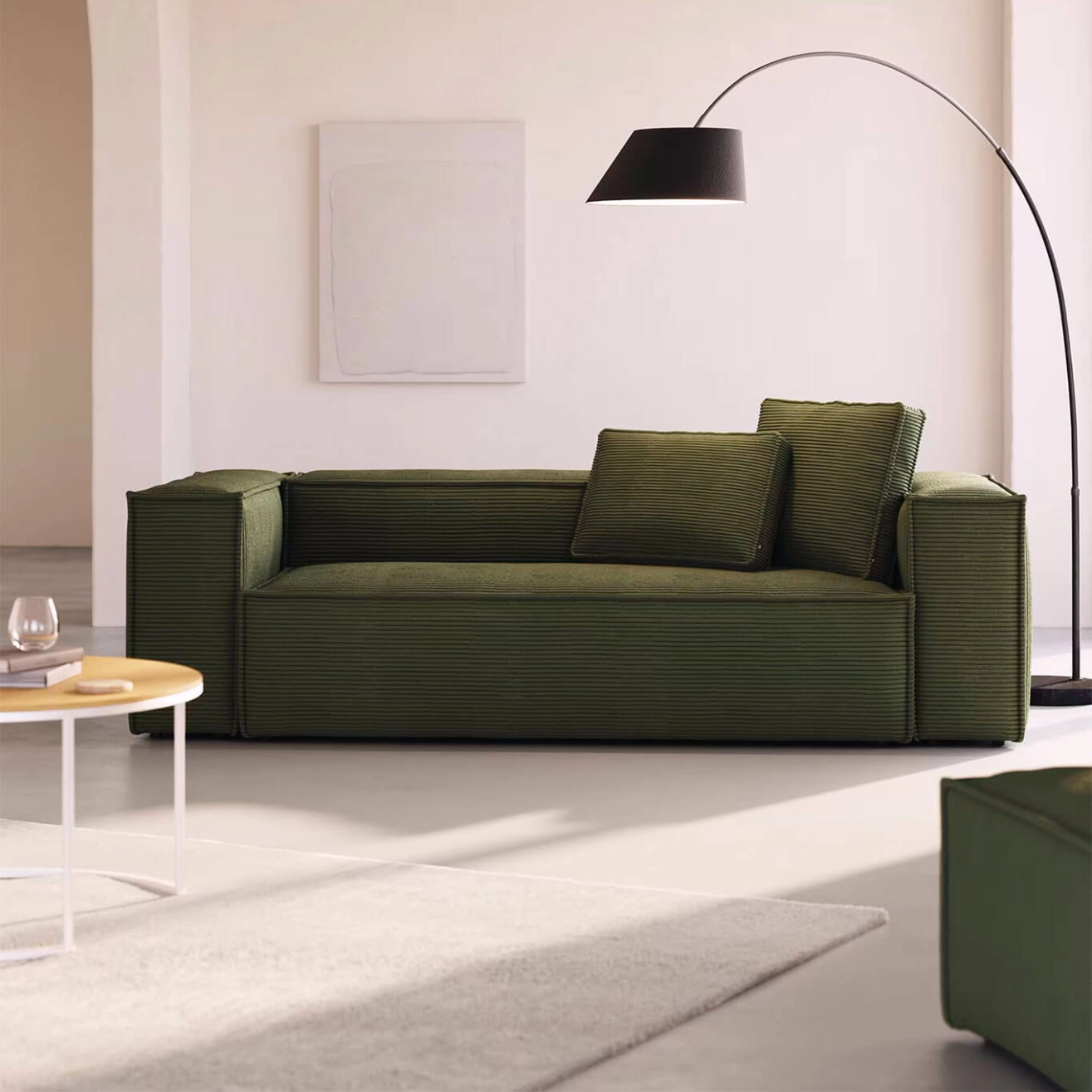 canapé 3 places en velours côtelé épais vert de 240 cm, conçu par