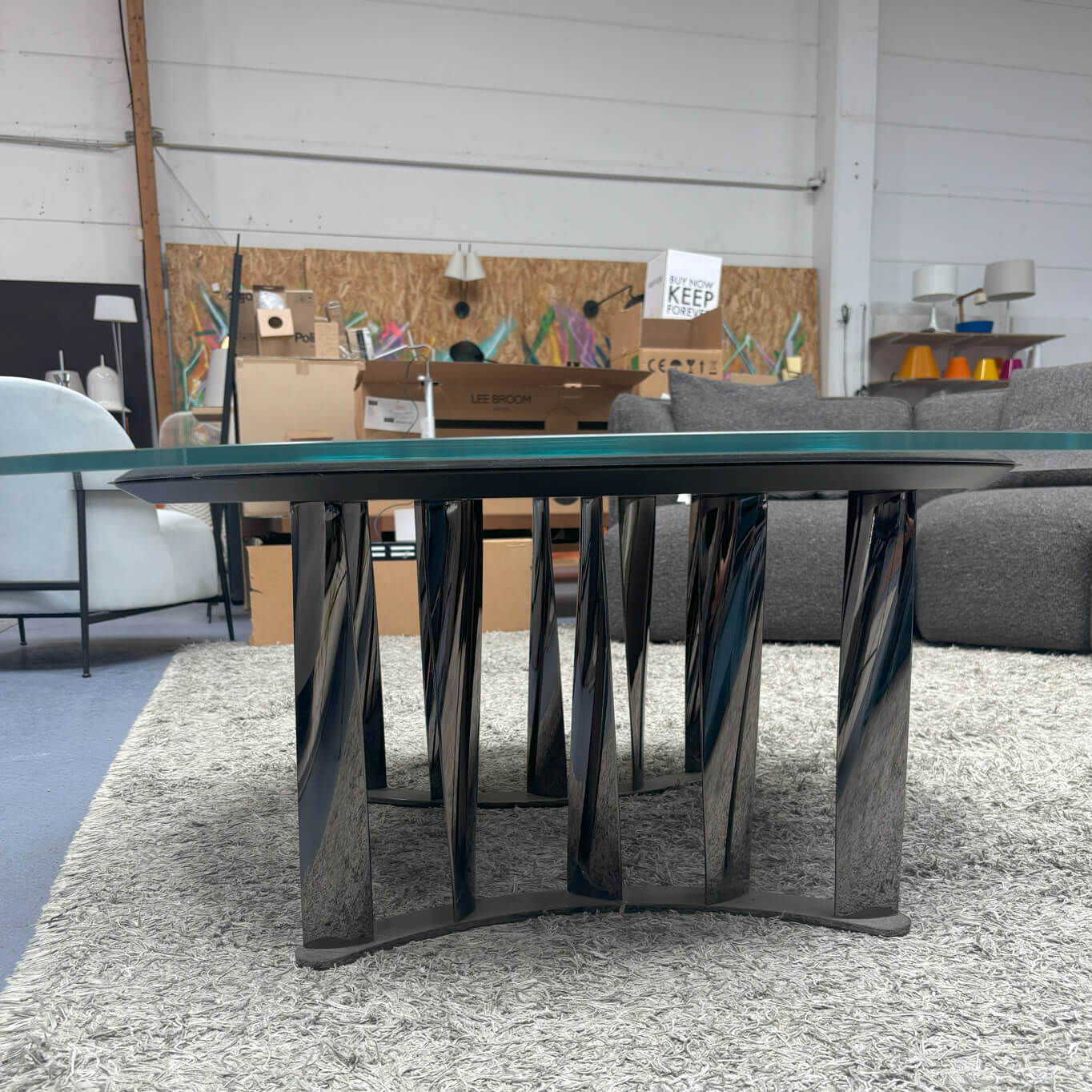 Imaginée par Rodolfo Dordoni, la table basse d'occasion Boboli pour Cassina se distingue par son piètement sculptural, composé de colonnes métalliques torsadées. Le plateau circulaire en verre transparent met en valeur la base architecturale de Boboli, créant un jeu de lumière et de reflets saisissant. L’ensemble conjugue rigueur géométrique et élégance dynamique, pour une présence forte au sein de l’espace de vie. Disponible en différentes finitions, la table basse d'occasion Boboli de Cassina incarne l’excellence du savoir-faire italien et s’adresse aux amateurs de design contemporain à la recherche d’une pièce à la fois fonctionnelle et artistique.