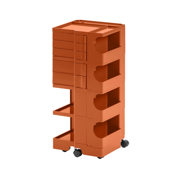 Boby est une desserte iconique qui allie fonctionnalité urbaine et design italien raffiné. Conçue pour organiser, déplacer et mettre à portée de main vos essentiels quotidiens, la Boby se distingue par son agencement modulaire, ses roulettes discrètes et ses tiroirs pratiques — une solution de rangement aussi esthétique que robuste signée par le designer Joe Colombo pour la maison ou le bureau ... En savoir plus