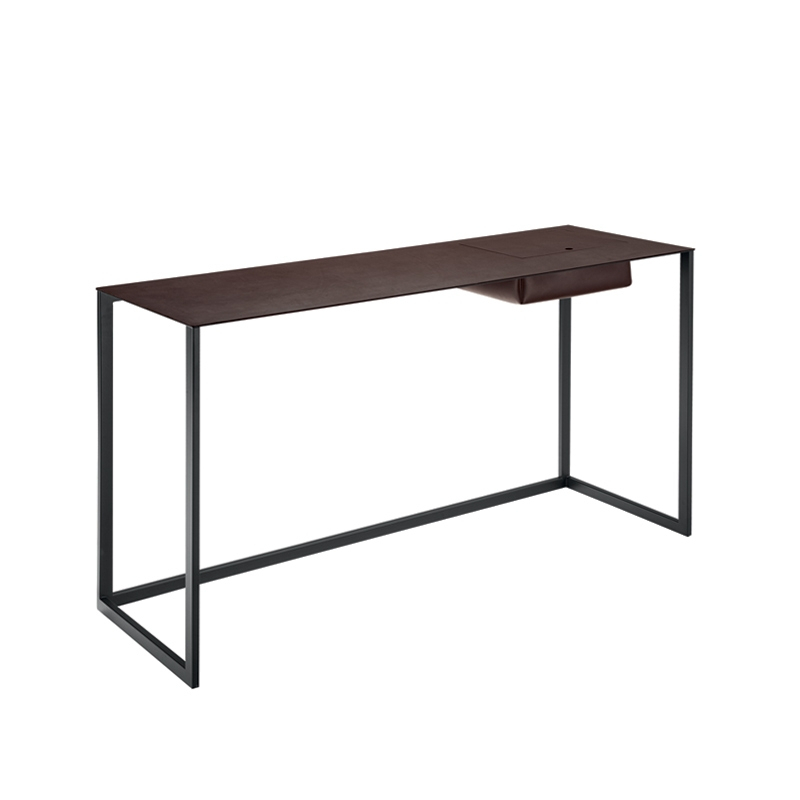 La collection 2013 de Zanotta inclut un bureau dessiné par le jeune designer Gabriele Rosa. Calamo est un petit bureau élégant peu profond, permettant de créer un espace de travail dans un petit espace de vie. C'est à la fois une table d'écriture et une console qui s'intègre dans tous les salons, contre un mur ou derrière un canapé. La structure et le plateau sont réalisés en acier verni. Un cuir sellier recouvre entièrement le plateau et forme le porte-objet. L'élément de rangement est accessible par une ouverture à bascule découpée directement dans le plateau.