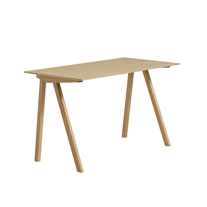 Pour la collection Copenhague, la maison d'édition Hay a invité les designers français Ronan et Erwan Bouroullec à dessiner une gamme de mobilier pour l'Université de Copenhague. Les designers se sont inspirés d'une chaise d'université dessinée par l'architecte Bernt Pedersen, à l'identité simple. La série Copenhague cherche à maintenir la simplicité évidente qui marque cette chaise reprenant le piètement tréteau, tout en créant une gamme de mobilier scolaire qui s'inscrit dans notre époque et s'adapte aux besoins fonctionnels d'une université. La collection s'éloigne un peu de l'esprit institutionnel de la chaise de départ par son originalité et ses formes. Le petit bureau Copenhague Desk 90 est composé d'un plateau en chêne recouvert de lino, fixé sur un piètement tréteau en chêne massif. Ce bureau domestique est idéal pour les petits espaces ou pour la chambre.