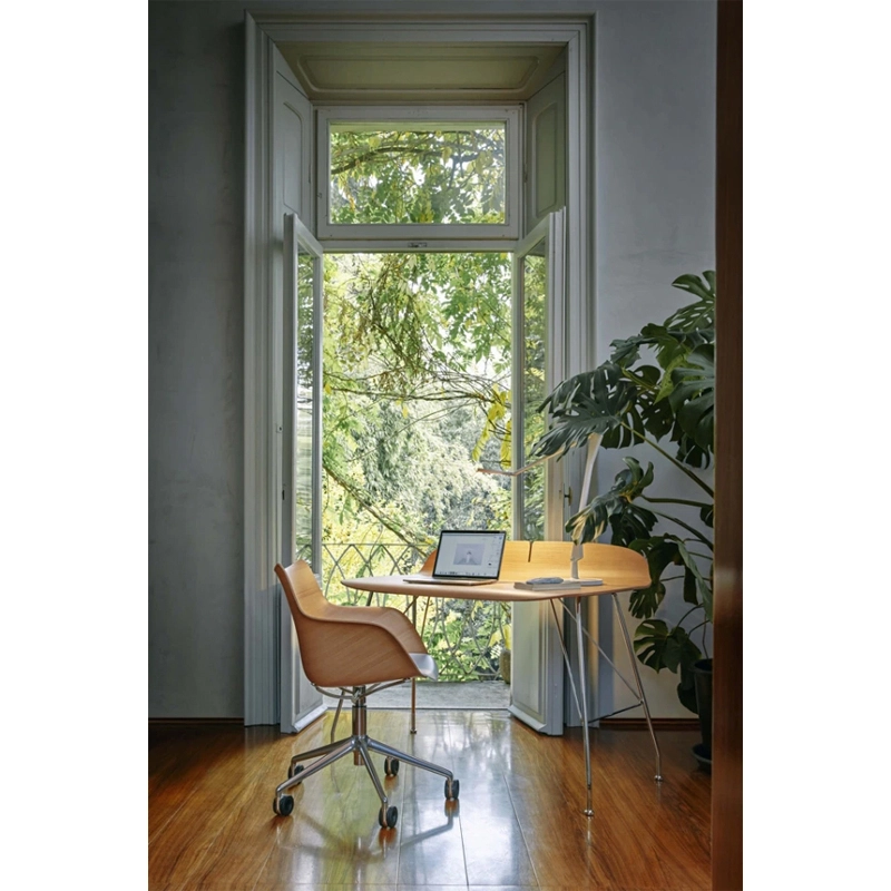 Avec Earl of Wood, le designer Philippe Starck et la marque de mobilier design Kartell proposent bureau élégant au design essentiel. Son plateau multifonctionnel en bois cintré répond aux besoins des habitat et contract. Le plateau en bois aux formes incurvées est associé à un piètement en métal tubulaire fin. La conception et les matériaux utilisés font de Earl of Wood un bureau aérien et graphique qui s'intègre dans tous les styles d'espaces.