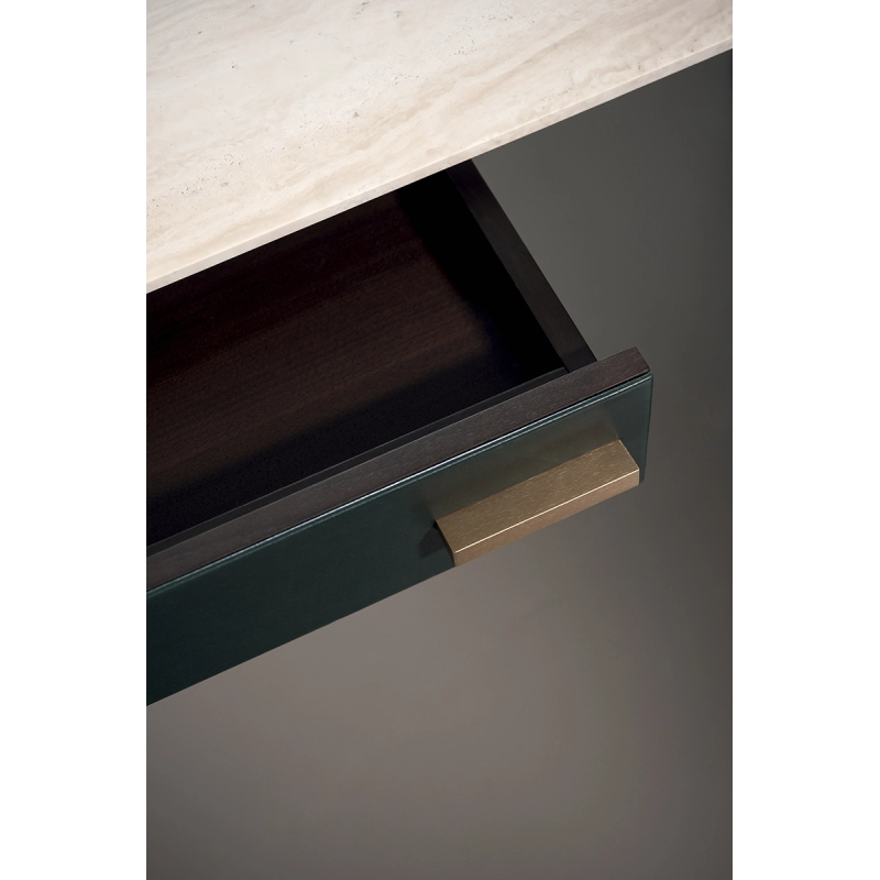 Conçu par Frederico Peri pour Baxter Made in Italy, le bureau Ellipse Light Up est doté d'un plateau en pierre dont la forme organique lui confère une grande légèreté. Il comprend une base robuste et un cadre revêtus de cuir, ainsi qu'une structure en laiton avec lumière intégrée. Aussi esthétique que fonctionnel, Ellipse Light up s'intègre facilement dans un salon ou chambre.