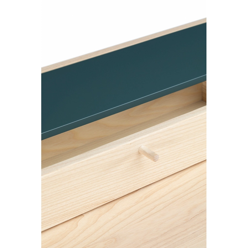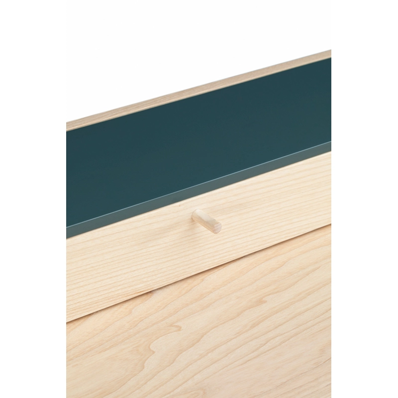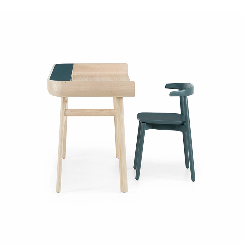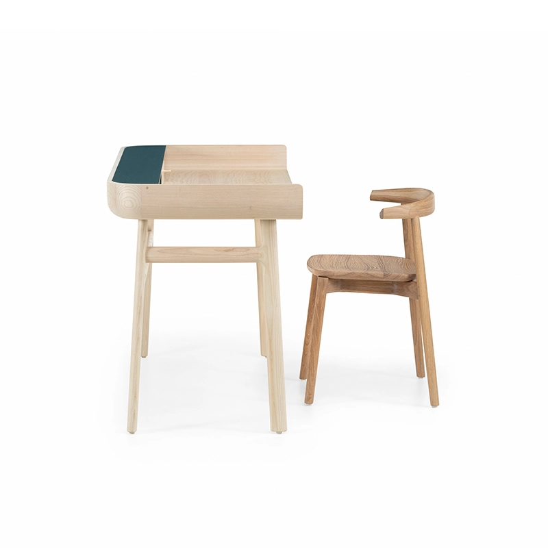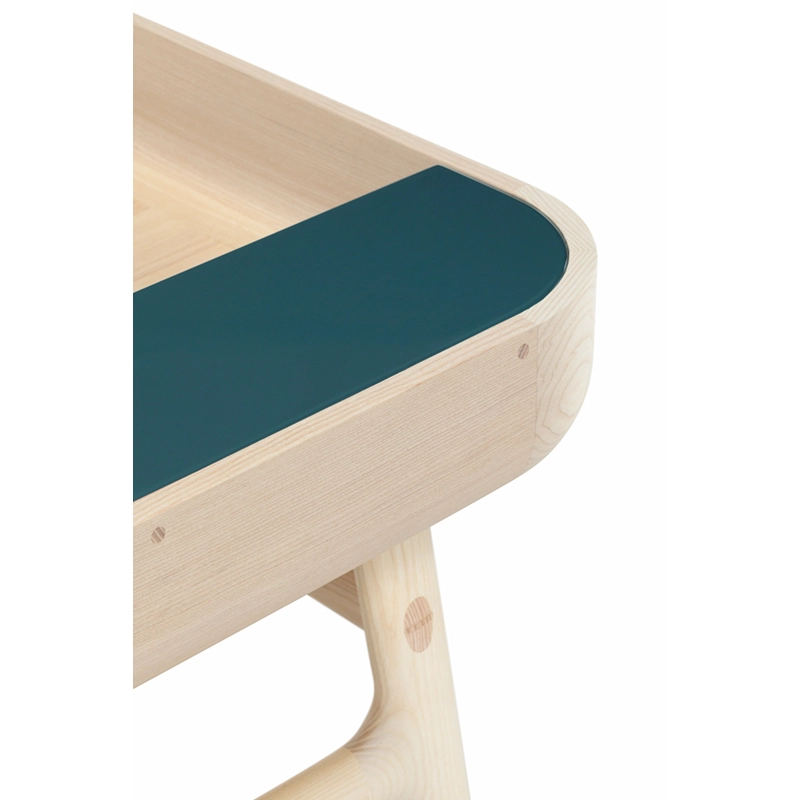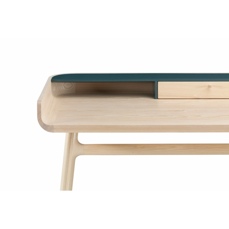 Fabriqué en bois avec des touches de laque, Harold est un bureau d'écriture classique doté d'un tiroir de table et d'espaces de rangement ouverts. Les courbes vers le haut sur les côtés du plateau sont usinées à partir de généreuses planches de bois de première qualité. Les pieds minces à cadre en H reliés par des tenons en coin offrent une légèreté visuelle au bureau Harold.
