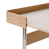 plateau linoléum champignon, chêne laqué, base acier chromé