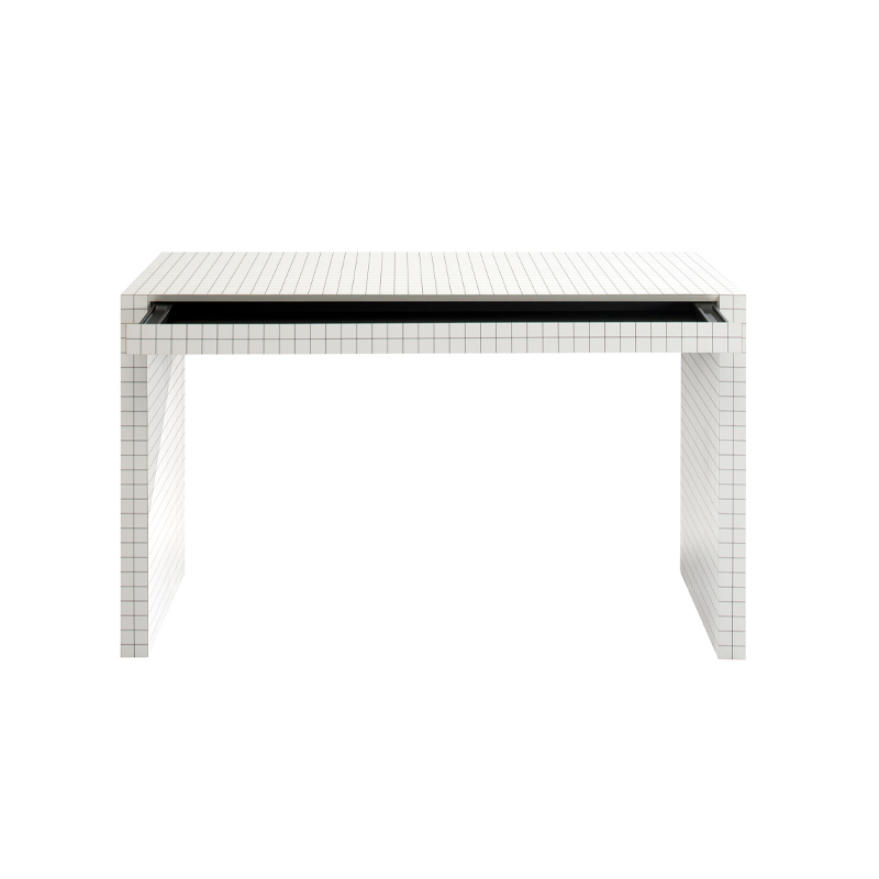 Les produits de la collection Quaderna sont le résultat d’un processus hautement industrialisé et en même temps d’un grand savoir-faire artisanal. Le stratifié à carreau a été créé spécialement sur la base du design de Superstudio et présente un quadrillage avec un entraxe de 3 cm, réalisé par impression numérique. Ce stratifié est ensuite appliqué manuellement, nécessitant une grande précision et plusieurs heures de travail pour chaque pièce. La convergence des lignes du motif détermine l’homogénéité des surfaces et confère au meuble une forte personnalité.