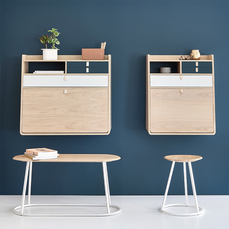 Gaston est un secrétaire à l'allure contemporaine, créé par Florance Watine pour Hartô. Parfait pour les petits espaces, il est équipé de trois tiroirs et d'une grande tablette rabattable qui offre un bel espace de travail. Les poignées en cuir constituent un détail esthétique et ajoutent une touche d'élégance. Avec sa silhouette sobre, le secrétaire mural Gaston s'intègre facilement dans tous les styles d'intérieurs : dans la chambre comme le salon.