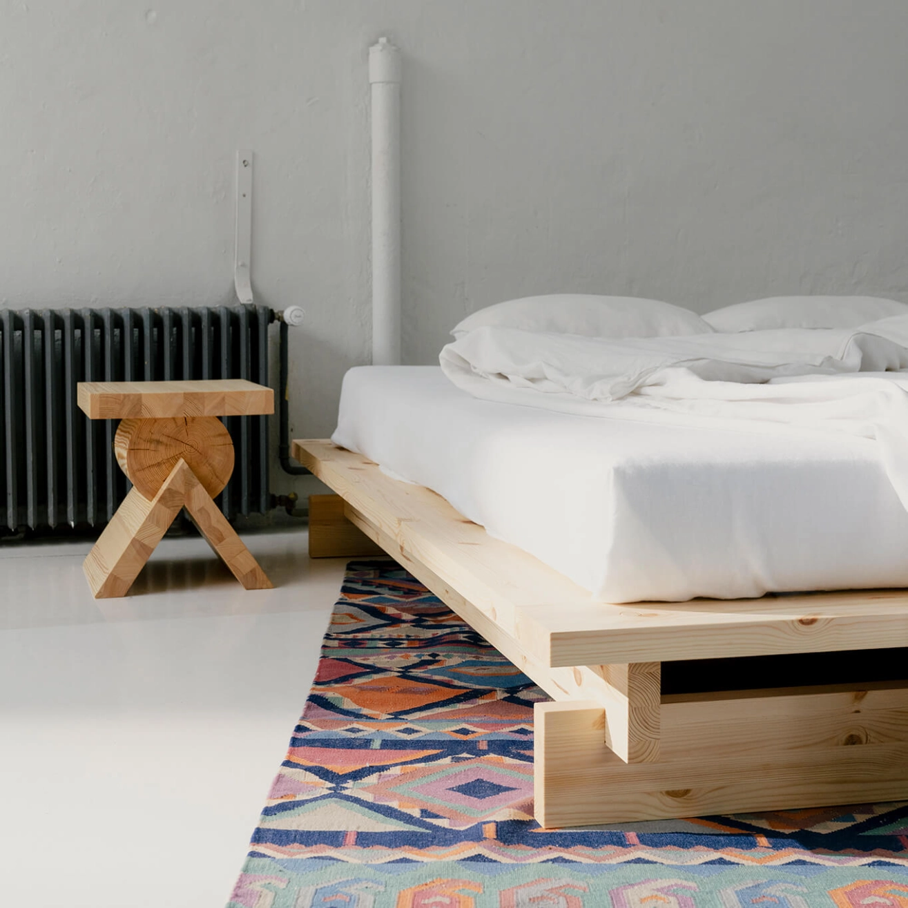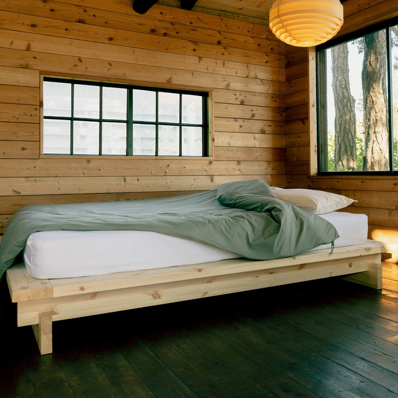 Le cadre de lit Aamu de Vaarnii incarne une vision du design à la fois radicale et essentielle, pensée pour ceux qui recherchent la même rigueur esthétique dans leur chambre que dans le reste de leur intérieur. Réalisé en épais panneaux de pin finlandais, il s’assemble sans vis ni pièces supplémentaires grâce à un ingénieux système d’emboîtement. Aamu possède une silhouette épurée, volontairement discrète, qui met en valeur la beauté brute du bois tout en assurant une stabilité durable. Imaginé par l’équipe de design interne de Vaarnii, le cadre de lit Aamu est livré à plat et disponible en deux tailles. Une fois installé, il promet de vous accompagner, nuit après nuit, pour de nombreuses années.