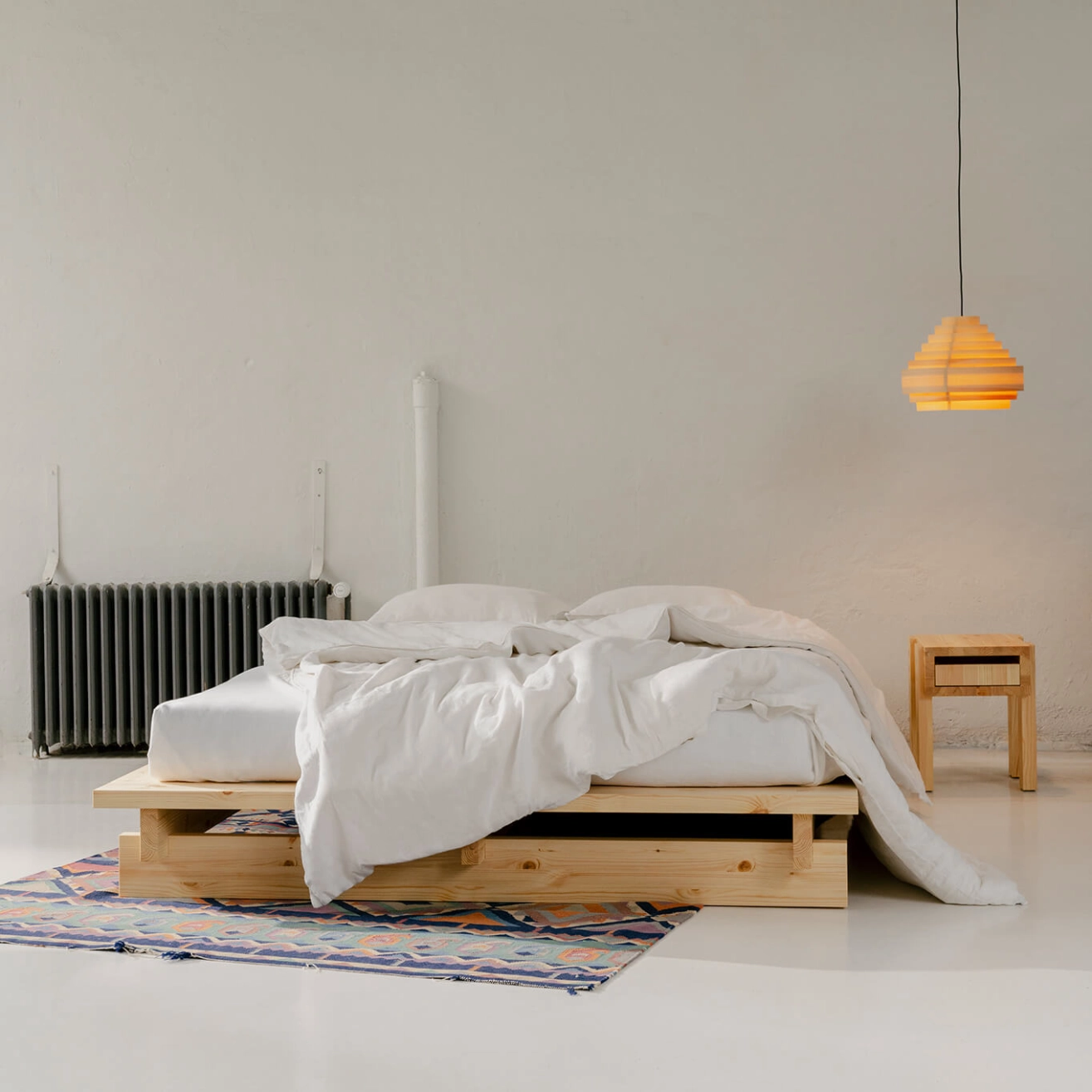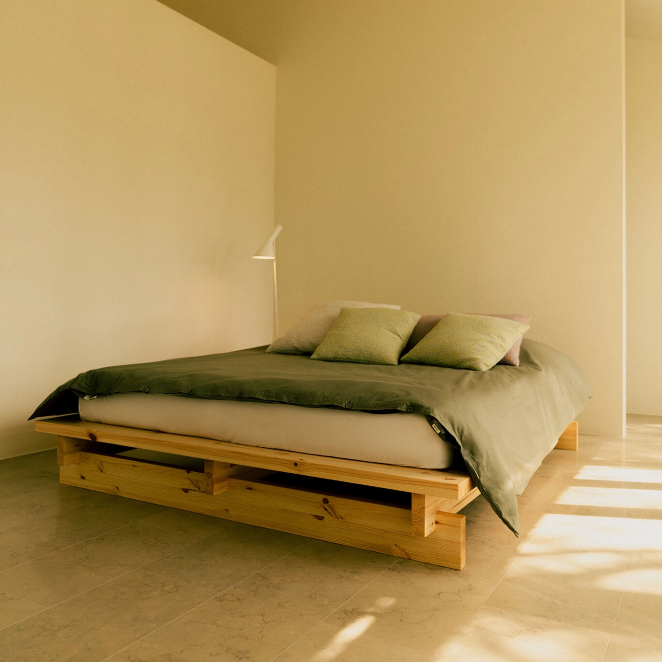 Le cadre de lit Aamu de Vaarnii incarne une vision du design à la fois radicale et essentielle, pensée pour ceux qui recherchent la même rigueur esthétique dans leur chambre que dans le reste de leur intérieur. Réalisé en épais panneaux de pin finlandais, il s’assemble sans vis ni pièces supplémentaires grâce à un ingénieux système d’emboîtement. Aamu possède une silhouette épurée, volontairement discrète, qui met en valeur la beauté brute du bois tout en assurant une stabilité durable. Imaginé par l’équipe de design interne de Vaarnii, le cadre de lit Aamu est livré à plat et disponible en deux tailles. Une fois installé, il promet de vous accompagner, nuit après nuit, pour de nombreuses années.
