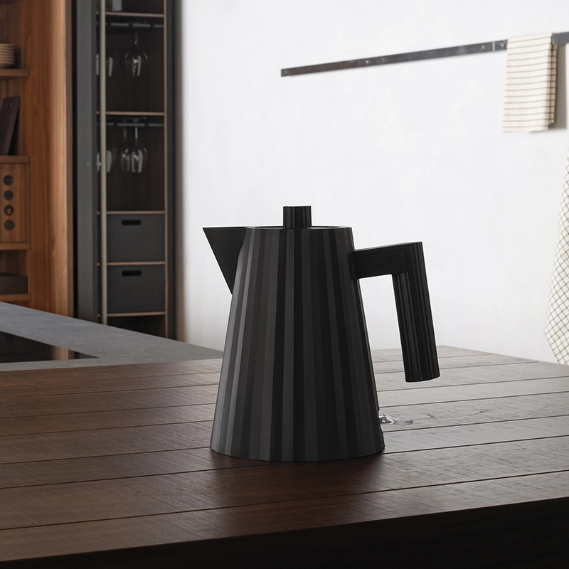 Editée par Alessi, la bouilloire électrique Plissé est élégante et sculpturale. Malgré une forme simple et épurée, elle habille parfaitement une cuisine avec son habit plissé. La bouilloire Plissé marie les aspects fonctionnels à un design plastique et fascinant, révélant la formation d’architecte de Michele De Lucchi, ainsi que ses passions pour l’artisanat et la sculpture. La bouilloire électrique Plissé d'Alessi peut être comparée à un habit de haute couture, un magnifique objet pour la cuisine.
