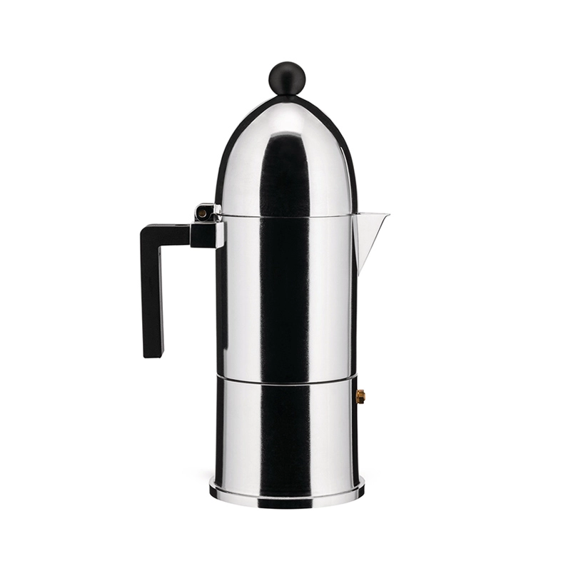 La cafetière espresso La Cupola est dessinée en 1988 pour le célèbre éditeur italien Alessi par Aldo Rossi, auteur de certains des objets les plus représentatifs des années 80 dont la cafetière La Conica, quatre ans auparavant. La Cupola montre la capacité propre aux grands designers de dialoguer avec les goûts du public: une cafetière à moka ?pour tous?, dans un bel aluminium qui réchauffe toute la saveur du café à l'italienne avec art et simplicité. Cette cafetière est devenue une icône de la marque, naît comme une évolution de l'opération « Tea & Coffee Piazza » qui avait vu de grands architectes s'engager sur le thème de la création d'un service à thé et à café. Elle est réalisée en fonte d'aluminium avec poignée et pommeau en polyamide noir. La Cupola est considérée comme l'essence même de toutes les cafetières qui occupent nos cuisines, et servir le café à ses convives devient un véritable plaisir.