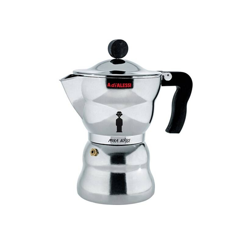La cafetière Moka éditée par Alessi est avant tout un hommage qu'Alessandro Mendini rend à son grand-père maternel, Alfonso Bialetti, qui, au cours des années 30 a été l'inventeur, le designer et le premier producteur de la Moka Express, la célèbre cafetière espresso italienne. Un classique du design du 20ème siècle avec sa forme octogonale qui s'inspire du futurisme et de l'art déco. Réalisée en aluminium fondu en coquille, la cafetière Moka présentée ici reprend les codes traditionnels avec des lignes courbes et des rondeurs tout en apportant certaines améliorations : le volume du récipient est recalculé, l'épaisseur du matériau optimisée et l'ergonomie du pommeau plus adaptée. La cafetière Moka s'est inscrite de façon indélébile dans la mémoire collective du public et le rituel continuera à se répéter chaque matin. Bien loin des nouvelles cafetières électriques, vous exposerez fièrement cette cafetière sur le plan de travail de la cuisine.