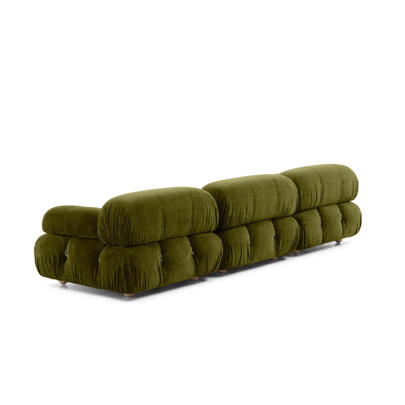 B&B Italia, Pierre Ambrogio Busnelli, ont choisi de conserver le module d’assise de 90x90 cm, ainsi que le dossier et l’accoudoir, fidèles au projet d’origine duquel ont également été récupérés les gabarits d’origine pour la coupe du revêtement. Reste également inchangé le rembourrage généreux en polyuréthane, qui forme le capitonnage caractéristique, obtenu à travers l’innovant système de câbles, crochets et anneaux conçu par Bellini en 1970, qui garantissent son aspect et sa modularité. En effet, grâce à des tirants et anneaux, les modules peuvent se détacher et se recomposer à souhait, en permettant au canapé de s’adapter aux goûts évolutifs et aux nécessités dynamiques des utilisateurs. L’architecte et designer Mario Bellini porte sur sa création un regard particulier : « Parmi tous les objets que j’ai conçus, c’est sans doute