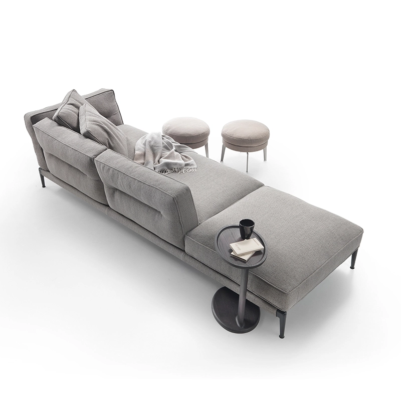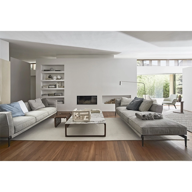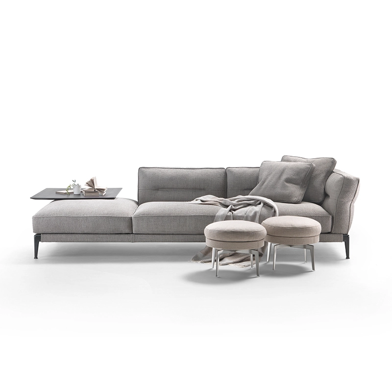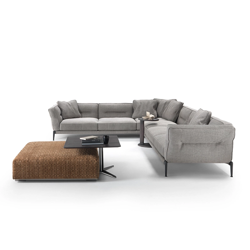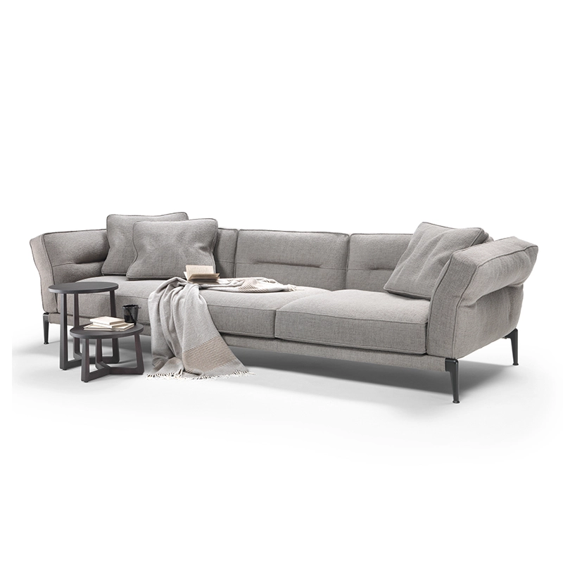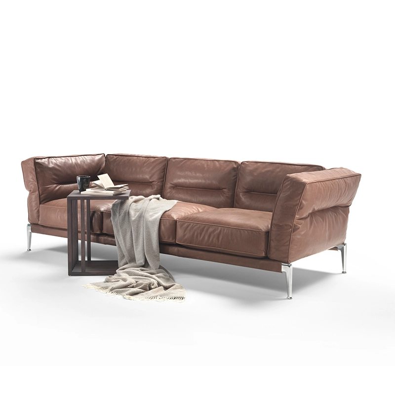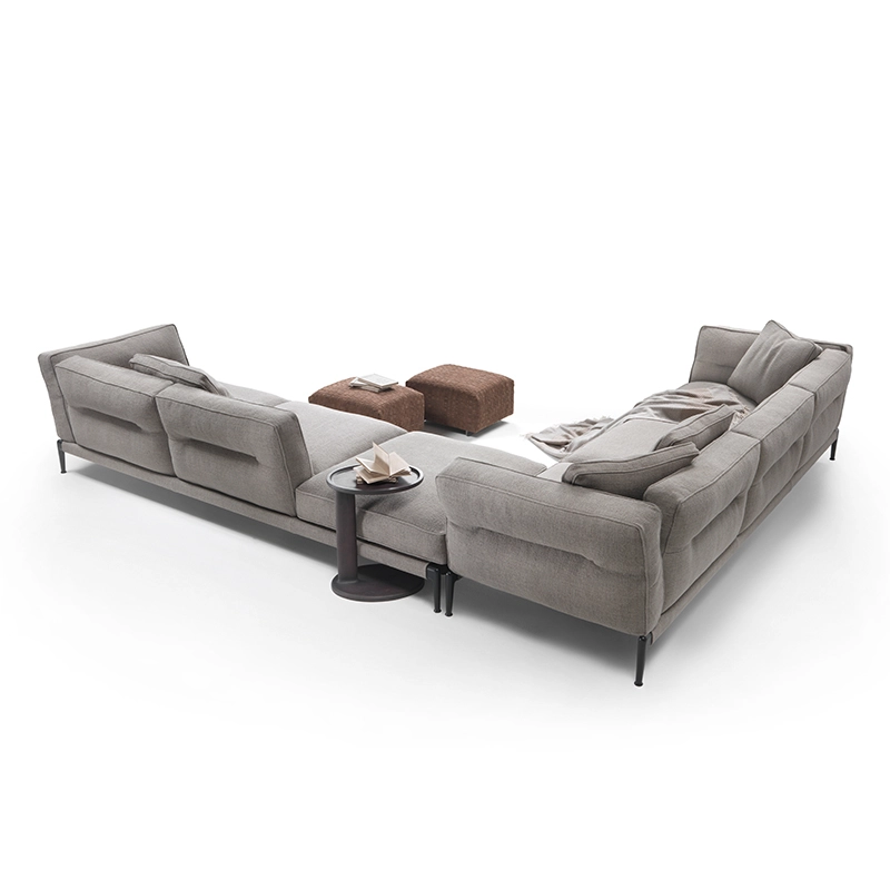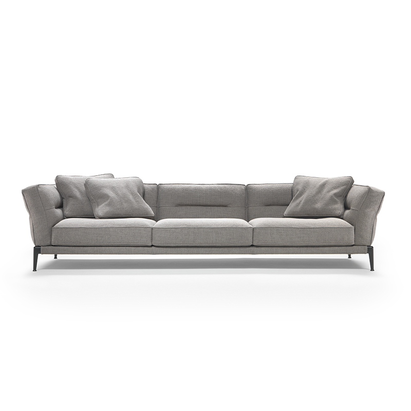 Dessiné par Antonio Citterio pour Flexform, Adda est un canapé qui se démarque par une esthétique épurée et contemporaine. Il arbore une structure légère et des coussins au garnissage généreux en duvet d’oie, caractérisés par un cordon qui en souligne les formes douces et accueillantes. Le canapé Adda de Flexform est surélevé du sol par un piètement en métal, recouvert de cuir ou de tissu, tandis que les pieds apparents en fonte d'aluminium révèlent un dessin gracieux, néanmoins d'un style résolument contemporain. Les moelleux coussins des accoudoirs et du dossier se fixent sur le piètement par un système à baïonnette simple et efficace. Dans le sens de la longueur, les coussins sont sillonnés par une couture originale qui produit une légère ondulation de la surface du revêtement – tissu ou cuir – et accentue le pli naturel qui se crée lorsque l'on s'appuie, devenant un signe distinctif du canapé Adda. Contactez-nous pour plus d’informations.