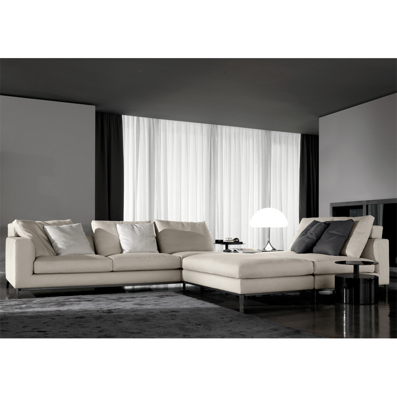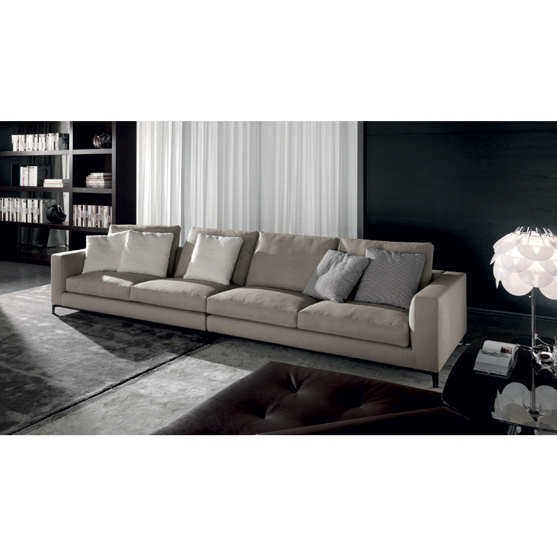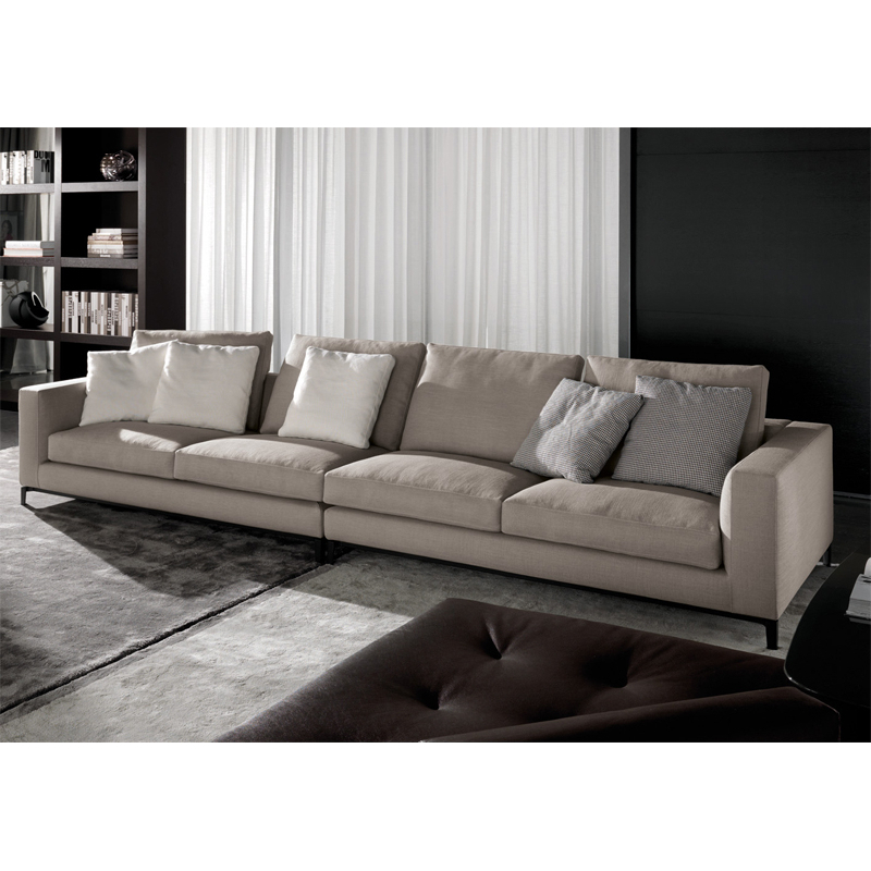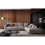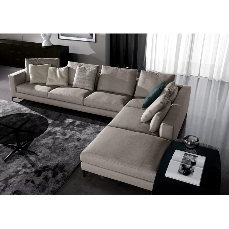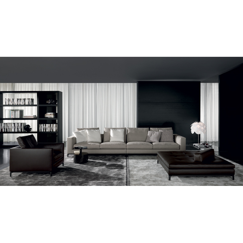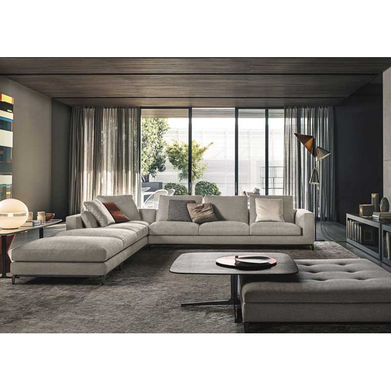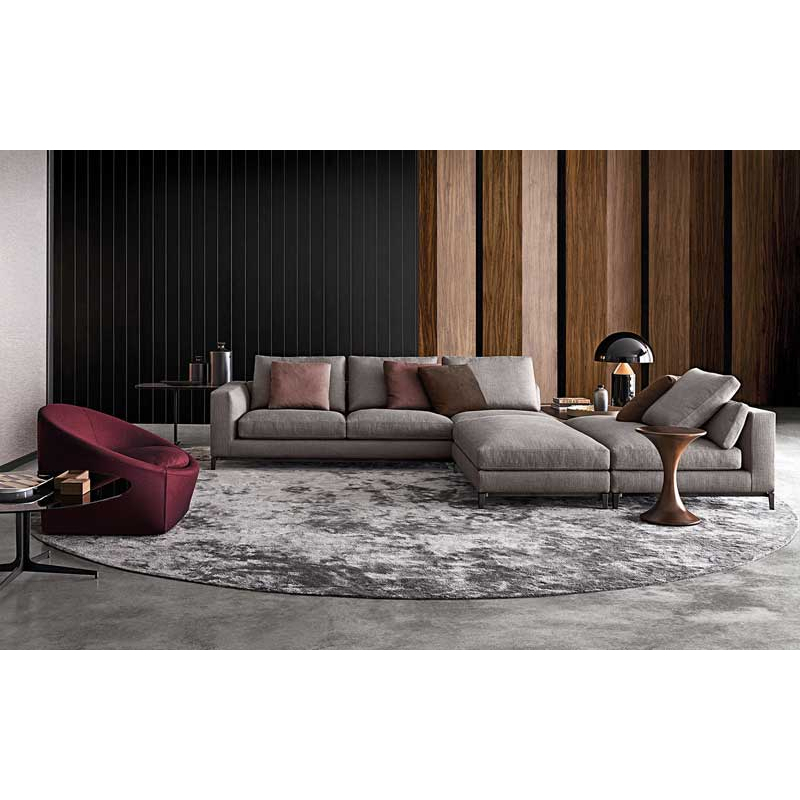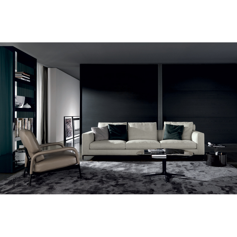 Minotti Studio. Grâce à la légère inclinaison de l’assise et à ses rembourrages souples et accueillants,
