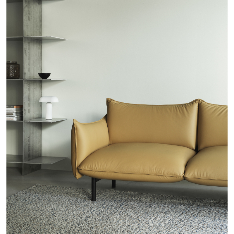 Le canapé Ark de Normann Copenhagen joue avec les courbes et les volumes, créant un canapé à la fois minimaliste et plein de profondeur. Ark apparaît presque comme un canapé construit uniquement à partir de coussins. L'assise, le dossier et les accoudoirs semblent tous être des coussins séparés, soigneusement disposés. Cette composition unique contribue à l'expression chaleureuse d'Ark, tandis que la simplicité du design rayonne de sophistication et d'élégance. Les courbes subtiles des coussins du canapé Ark contribuent à l’aspect visuel doux de ce modèle, laissant suggérer un confort d’assise tout aussi accueillant. Le petit espace entre l’assise et le sol ajoute de la légèreté au design, tout en permettant un nettoyage facilité et efficace sous le canapé. Ark est également disponible en version canapé 3 places et en fauteuil.