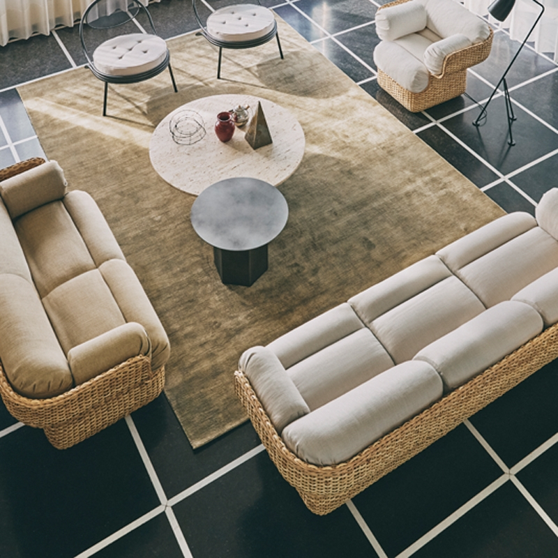 La collection Basket de chez Gubi rend hommage à la technique classique de la vannerie en rotin. La collection comprend un canapé trois places, un canapé deux places et un fauteuil, qui partagent tous la même construction et les mêmes caractéristiques.