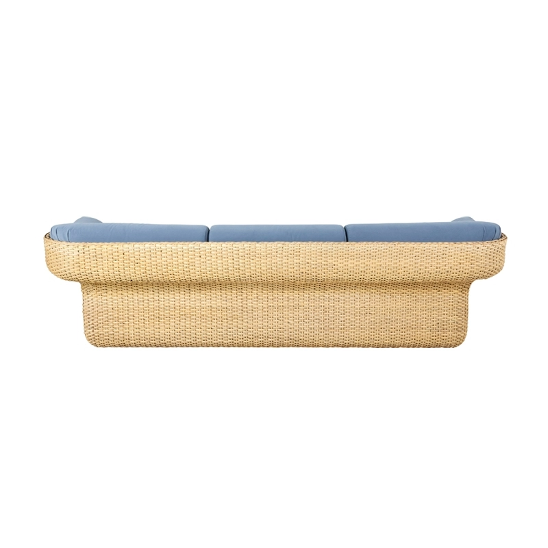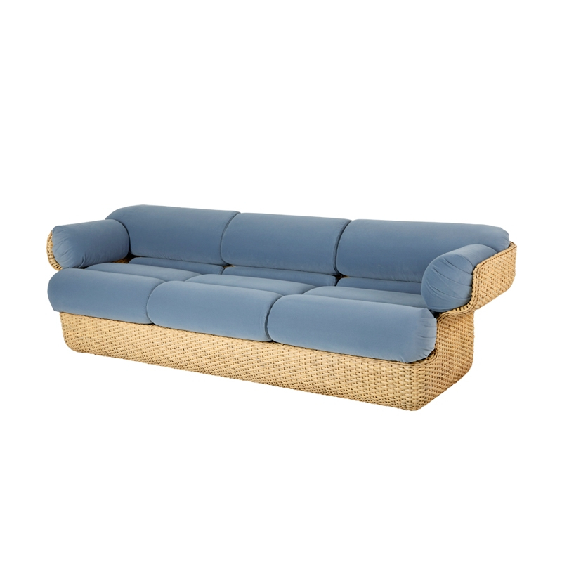 La collection Basket de chez Gubi rend hommage à la technique classique de la vannerie en rotin. La collection comprend un canapé trois places, un canapé deux places et un fauteuil, qui partagent tous la même construction et les mêmes caractéristiques.  Remplaçant la coque intérieure en fibre de verre que Colombo utilisait initialement, le canapé Basket est désormais formé à partir d'un squelette en acier plus respectueux de l'environnement, qui confère résistance et stabilité à la forme unique. La structure est recouverte de rotin tressé à la main, utilisant une technique qui demande un énorme degré d'habileté et de savoir-faire pour sa création. Le canapé Basket est équipé de coussins arrondis sur l'assise et le dossier, fabriqués à partir d'une mousse confortable avec des coussins  cylindriques ajoutant une douceur supplémentaire et un effet enveloppant sur les côtés du siège.