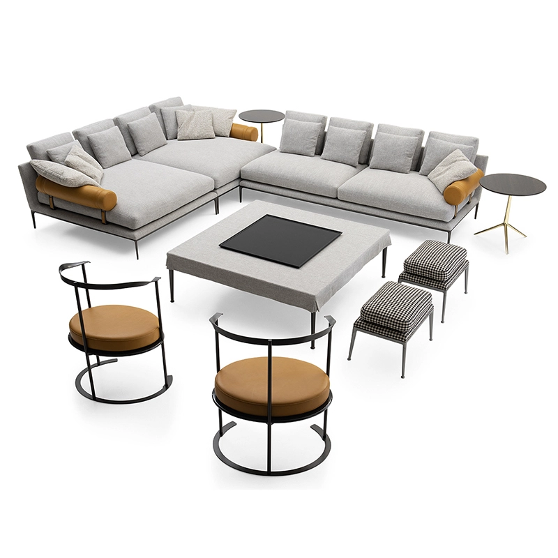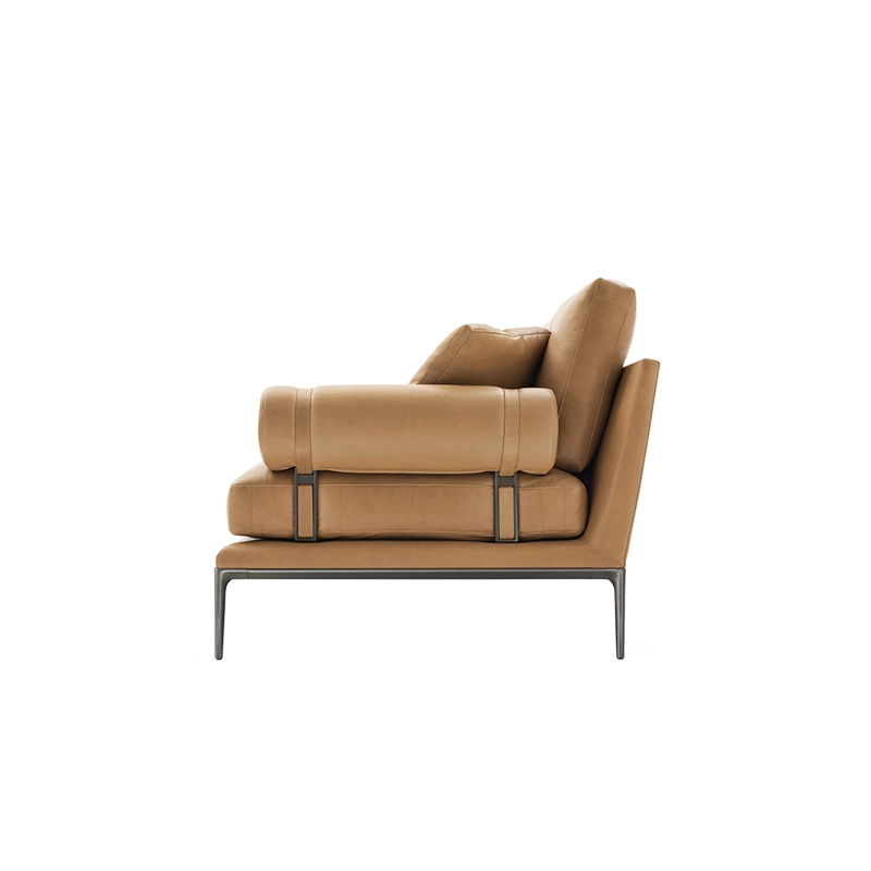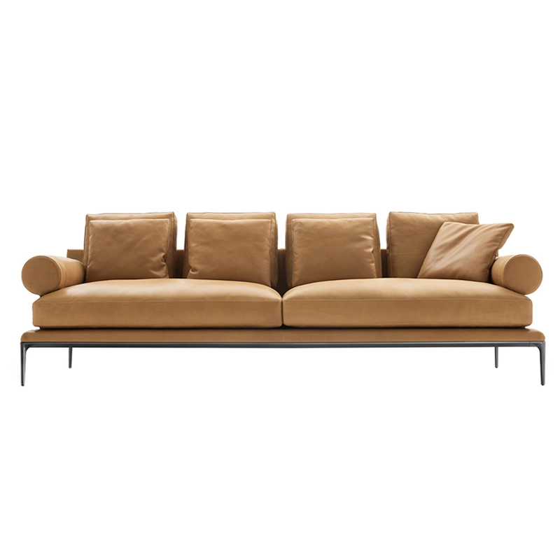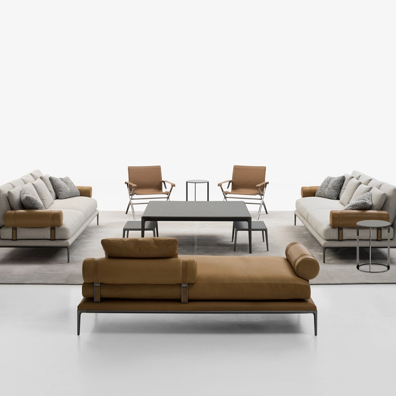Le système d’assises modulables B&B Atoll d’Antonio Citterio, dont le nom renvoie aux récifs coralliens du même nom, est l’expression recherchée d’une forme esthétique équilibrée et d’un style contemporain affirmé, tout en étant extrêmement élégant. Trois plateformes de base composent le point de départ du système. Elles sont complétées par des accoudoirs et dossiers pour former divers éléments : canapés, dormeuses, modules d’angles, éléments simples ou modulables avec éléments chaise longue et pouf. Les structures possèdent des lignes légères et délicates, appliquées sur des supports hauts réalisés par moulage avec profilés métalliques qui soulignent la ligne entre les structures elles-mêmes et le rembourrage. Pour donner encore plus de caractère à la proposition, un élément d’appui, avec lequel jouer à volonté : un coussin rouleau fixé par des courroies en cuir et une structure fabriquée par moulage métallique. C'est un accessoire à insérer librement entre le coussin de l’assise et la structure de base, pour offrir un soutien supplémentaire ou pour devenir, au choix, un élément accoudoir ou dossier. Edité par B&B ItaliaB&B Atoll se révèle ainsi être un projet dynamique, avec un degré d’adaptation des compositions toujours nouveau, et la possibilité de créer de multiples formes d’assises, des plus informelles aux plus formelles.