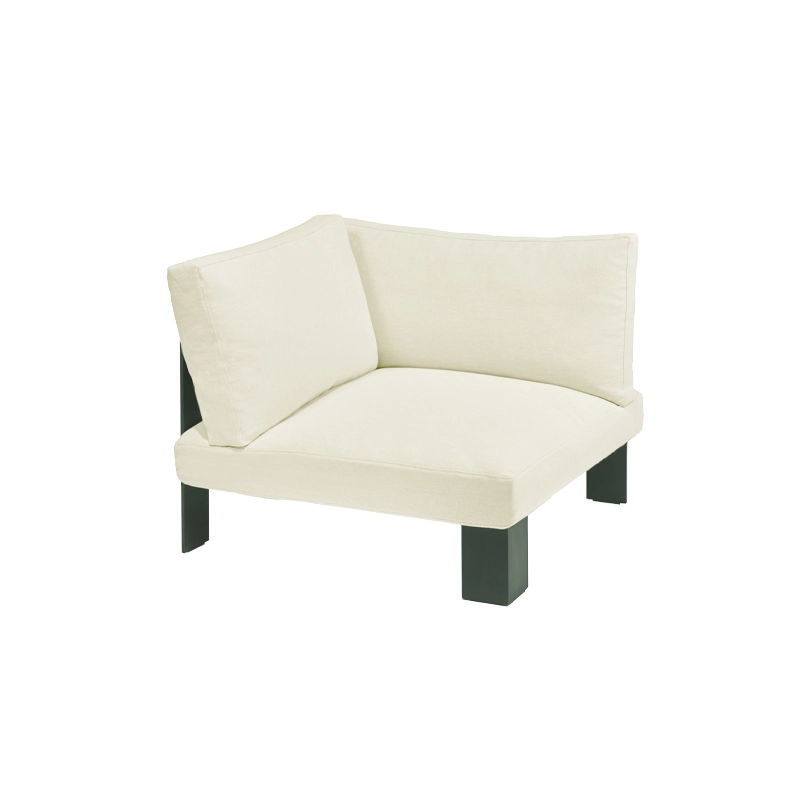 Conçue par la designer Bea Mombaers pour Serax, la collection de canapés Bench propose divers modules d'assise indépendants pour créer un espace de détente accueillant et modulable : des modules de canapé 1, 2 et 3 places ainsi qu'un ottoman repose-pieds. Intégré à l'ensemble de cette large collection Bench, le module d'angle offre une solution élégante et modulaire pour les intérieurs contemporains. Le module d'angle Bench est disponible en huit coloris dans des tons neutres et épurés permettant de s'harmoniser avec tous les styles de décoration intérieur et apporter une touche de sophistication. Chaque pièce est conçue en aluminium noir pour une maniabilité optimale et est dotée de coussins moelleux adaptés à un usage intérieur et extérieur. En combinant et configurant ces éléments modulaires, il est possible de créer un agencement de sièges personnalisé et flexible, parfaitement adapté à tous les espaces et à tous les besoins.