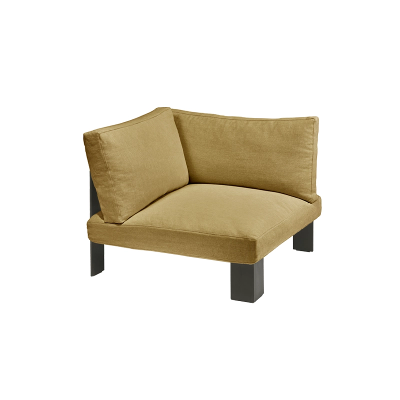 Conçue par la designer Bea Mombaers pour Serax, la collection de canapés Bench propose divers modules d'assise indépendants pour créer un espace de détente accueillant et modulable : des modules de canapé 1, 2 et 3 places ainsi qu'un ottoman repose-pieds. Intégré à l'ensemble de cette large collection Bench, le module d'angle offre une solution élégante et modulaire pour les intérieurs contemporains. Le module d'angle Bench est disponible en huit coloris dans des tons neutres et épurés permettant de s'harmoniser avec tous les styles de décoration intérieur et apporter une touche de sophistication. Chaque pièce est conçue en aluminium noir pour une maniabilité optimale et est dotée de coussins moelleux adaptés à un usage intérieur et extérieur. En combinant et configurant ces éléments modulaires, il est possible de créer un agencement de sièges personnalisé et flexible, parfaitement adapté à tous les espaces et à tous les besoins.