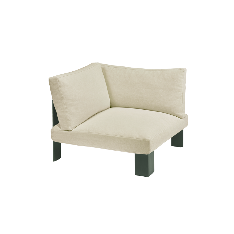 Conçue par la designer Bea Mombaers pour Serax, la collection de canapés Bench propose divers modules d'assise indépendants pour créer un espace de détente accueillant et modulable : des modules de canapé 1, 2 et 3 places ainsi qu'un ottoman repose-pieds. Intégré à l'ensemble de cette large collection Bench, le module d'angle offre une solution élégante et modulaire pour les intérieurs contemporains. Le module d'angle Bench est disponible en huit coloris dans des tons neutres et épurés permettant de s'harmoniser avec tous les styles de décoration intérieur et apporter une touche de sophistication. Chaque pièce est conçue en aluminium noir pour une maniabilité optimale et est dotée de coussins moelleux adaptés à un usage intérieur et extérieur. En combinant et configurant ces éléments modulaires, il est possible de créer un agencement de sièges personnalisé et flexible, parfaitement adapté à tous les espaces et à tous les besoins.