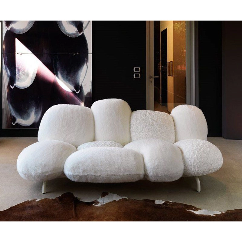 Cipria est un canapé profondément iconique, qui se caractérise par ses 9 coussins indépendants les uns des autres, fixés sur une structure invisible en métal. Le rembourrage est en mousse Gellyfoam® et ouate synthétique, tandis que le revêtement est en fourrure écologique, particulièrement douce. Dessiné par Fernando et Humberto Campana pour la marque Edra, le canapé Cipria offre de multiples possibilités d’assise, formelle et informelle.