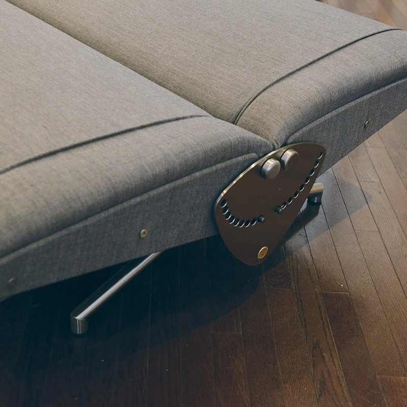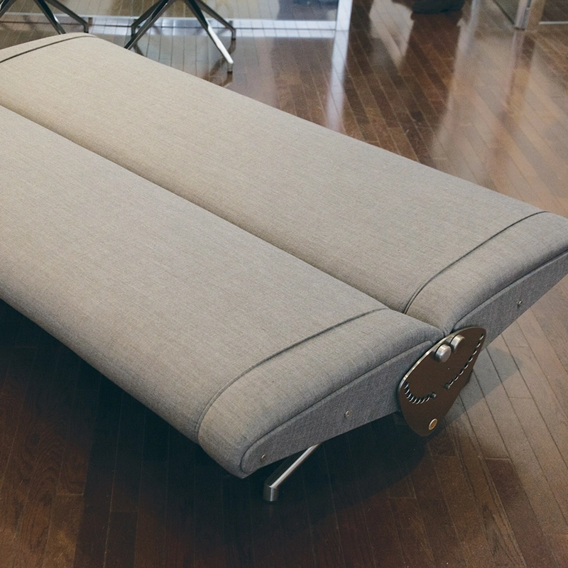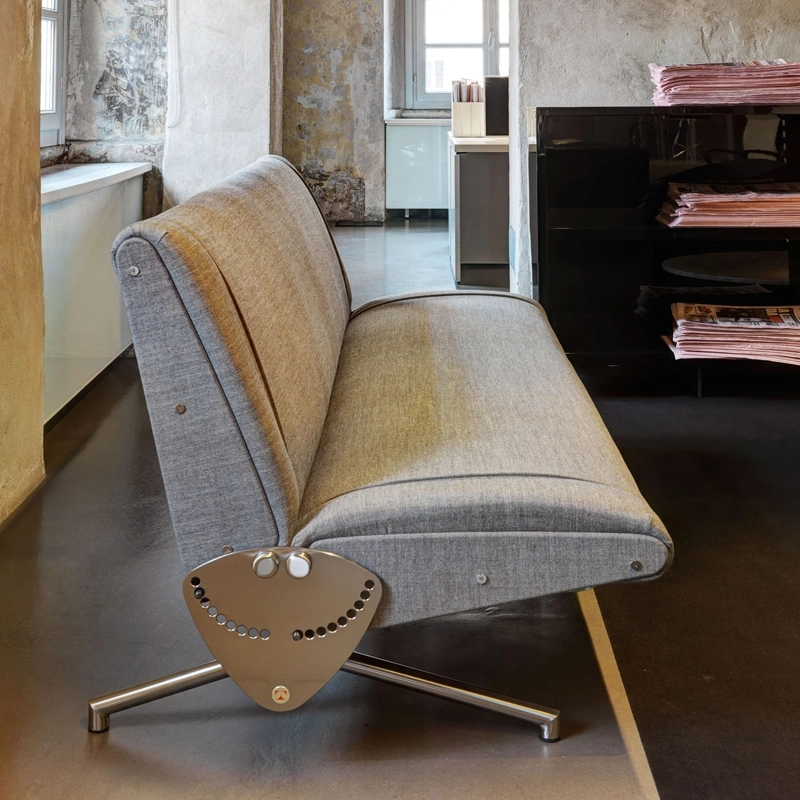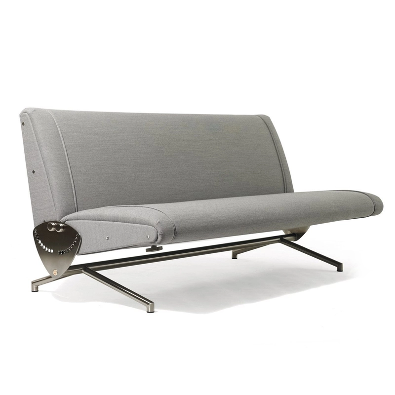 Le D70 est présenté comme le « canapé-lit breveté » pour la première fois lors du Salon du meuble simple à la X Triennale de 1954, établissant de manière emblématique le nouveau chemin de la toute jeune Tecno. Le joint mécanique placé bien en vue souligne, comme s'il s'agissait d'une expression de la conception, la volonté d'Osvaldo Borsani de dessiner et de produire des éléments d'aménagement originaux, autonomes et élégants dans la forme, technologiques et industriels dans la production. Le mécanisme principal tient dans un levier avec dent d'arrêt qui s'insère dans un plateau gradué, facilement réglable au moyen d'une manette, ce qui rend possible toute inclinaison du dossier par rapport à l'assise jusqu'à constituer un lit. La structure ainsi conçue n'est pas seulement belle pour l'harmonie de la forme et de la position, elle est aussi extrêmement commode pour l'adaptabilité des parties souples à la personne. Edité par Tecno, le D70 est devenu ainsi un objet iconique proposé pour la maison mais également dans des espaces de représentation ou de réception.