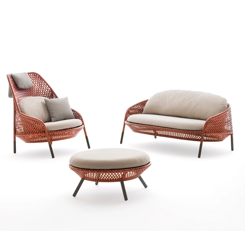 Dessinée par Stephen Burks pour Dedon, Ahnda est une collection originale de fauteuils d'extérieur, dont le design, l'ergonomie et le confort sont ceux d'un bel objet d'intérieur. Comprenant un canapé deux places, un fauteuil club, un fauteuil bergère et un repose-pied/table basse, Ahnda séduit par son beau tressage ajouré, inspiré par la culture métissée des Philippines. Véritable invitation à la détente, Ahnda possède une inclinaison parfaite qui permet aussi de se reposer que de discuter dans le jardin. Conçue pour résister aux intempéries les plus extrêmes, cette collection outdoor allie parfaitement le fonctionnel et l’esthétique.
