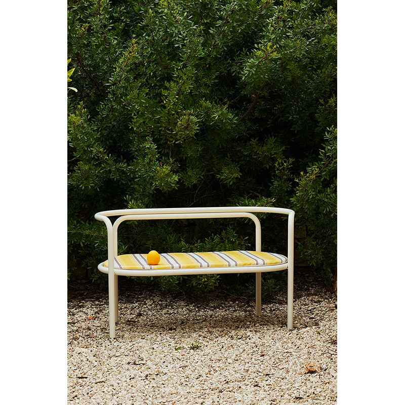 Le banc deux places Locus Solus est une réédition inédite par Exteta et Jacquemus du modèle créé en 1964 par la designer italienne Gae Aulenti. Ce banc extérieur s'harmonise parfaitement avec les autres éléments de la collection Locus Solus et offre une élégance intemporelle à votre espace extérieur. La structure du banc Locus Solus est en acier tubulaire inoxydable poudrée en beige. Ce processus garantit à la fois durabilité et résistance aux intempéries, faisant de cette pièce un choix idéal pour les environnements extérieurs. Ce banc Locus Solus, fruit de la collaboration entre Exteta et Jacquemus, incarne l'alliance réussie entre le design intemporel de Gae Aulenti et la créativité contemporaine apportée par Simon Porte Jacquemus par la création des tissus de revêtement : beige et rayures jaunes Como. Cette réédition du banc Locus Solus offre non seulement une fonctionnalité exceptionnelle, mais aussi une esthétique colorée, vive et raffinée qui enrichira votre espace extérieur d'une touche de modernité et d'élégance.
