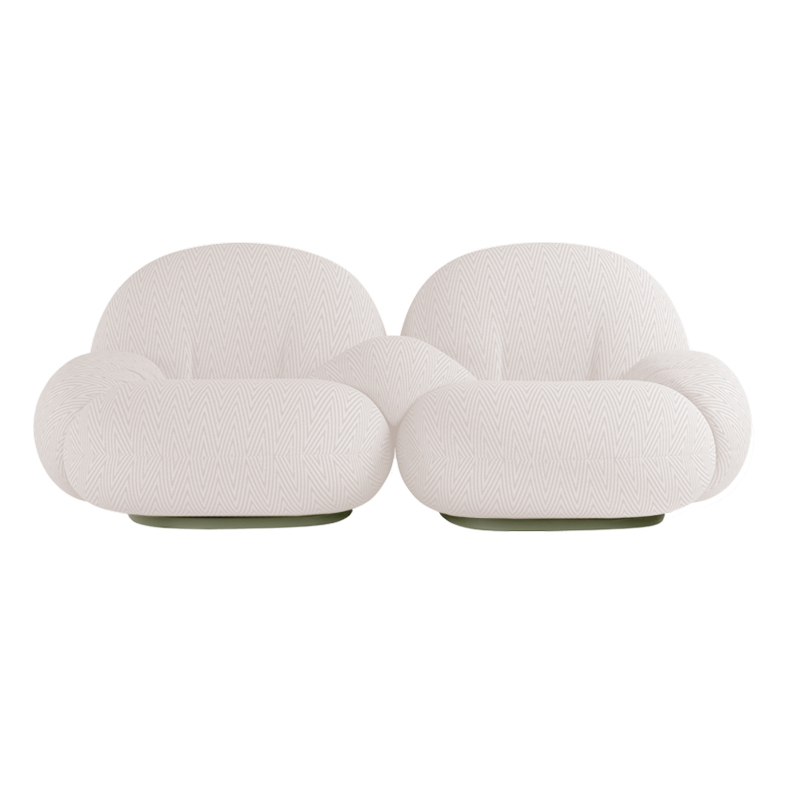 La célèbre collection avant-gardiste de Pierre Paulin repousse encore les limites et sort de la maison. La douceur sculpturale de la collection Pacha, inspirée par les nuages, se distingue par sa forme originale et son haut niveau de confort pour une relaxation optimale. Désormais, toutes ces qualités sont disponibles dans une version adaptée à l’extérieur. Les premières esquisses de Pierre Paulin pour la collection Pacha étaient des dessins très simples qui ressemblaient à des nuages. Ces formes sont devenues les bases du fauteuil Pacha, définissant un nouvel esprit de l’époque. Lorsqu’il a été lancé en 1975, le fauteuil Pacha introduisait une nouvelle façon de se relaxer, plus proche du sol. Conçu pour durer, Pacha Outdoor est doté d’une membrane intermédiaire, développée spécialement par Gubi pour la collection. Celle-ci est à la fois imperméable et respirante, assurant un séchage rapide après une exposition à la pluie, tout en maintenant le confort de l’icône d’origine. La base pivotante est réalisée en contreplaqué résistant à l’humidité et inclut un mécanisme de rotation en acier inoxydable.  Editée par Gubi, la collection Pacha Outdoor comprend un fauteuil pivotant avec ou sans accoudoirs, un pouf et des canapés de différentes tailles. Tous ces modèles peuvent être associés pour créer une zone de relaxation à l’extérieur adaptée à votre espace.