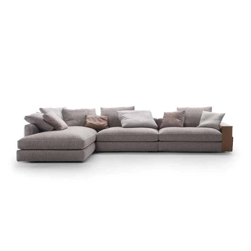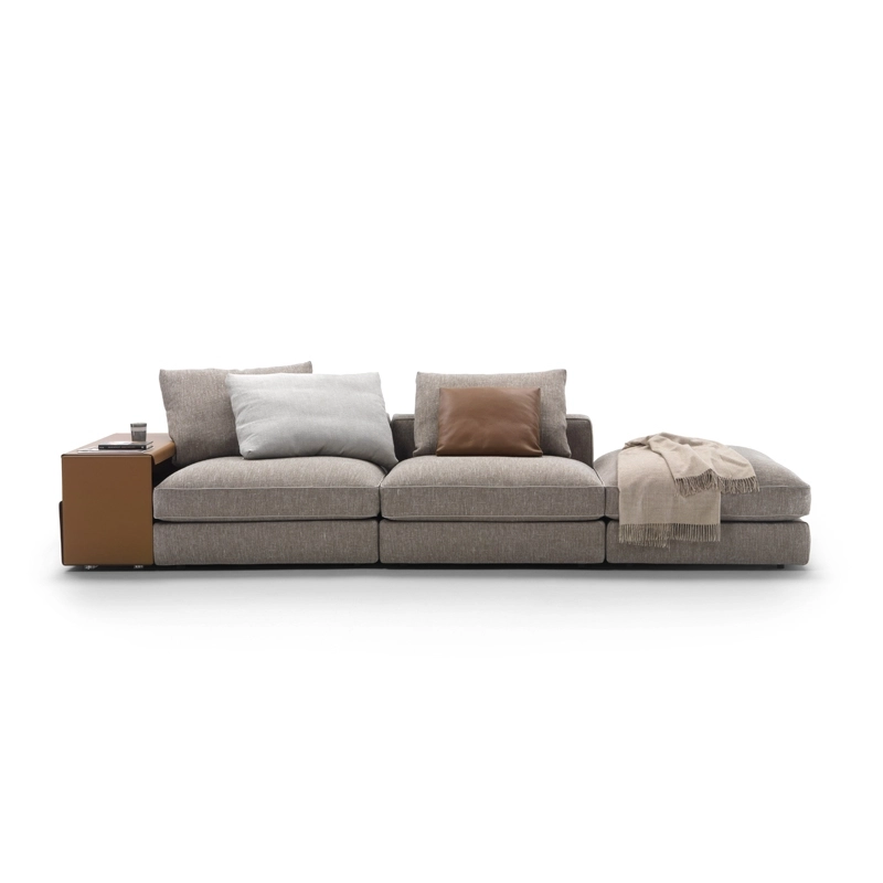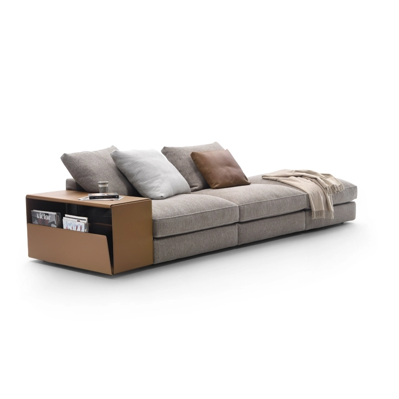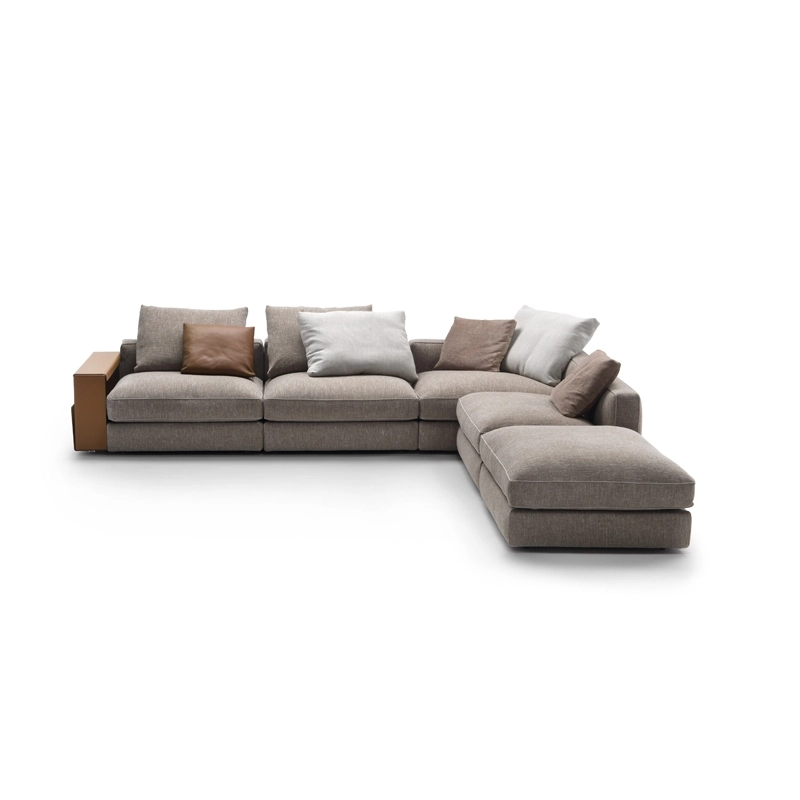 Dessiné par Antonio Citterio pour Flexform, le système de sièges Harper doit son allure élégante à ses proportions équilibrées, à la haute facture de son revêtement et à ses détails finement réalisés. Très élégant, le canapé Harper se distingue par des accoudoirs-rangements recouverts de cuir de sellerie. Constitués d'une fine plaque de métal recouverte de cuir de sellerie et disponibles en deux largeurs, ils ont été spécialement conçus pour différents usages : le compartiment permet d'accueillir plaids, magazines, livres, et une étagère pratique de ranger des objets du quotidien comme les télécommandes. Les vues de côté et de dos du canapé Harper révèlent des détails de construction sophistiqués qui rehaussent son élégance mesurée. La variété des combinaisons réalisables et des finitions en font un système de sièges prodigieusement modulable qui trouve aisément sa place dans n’importe quel espace.