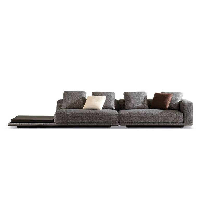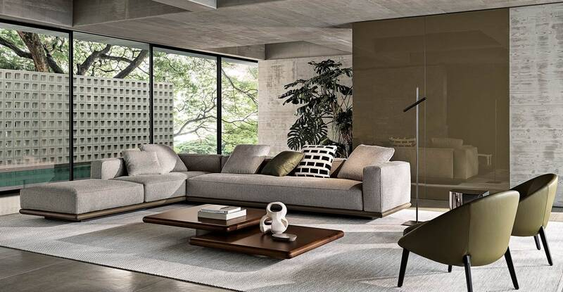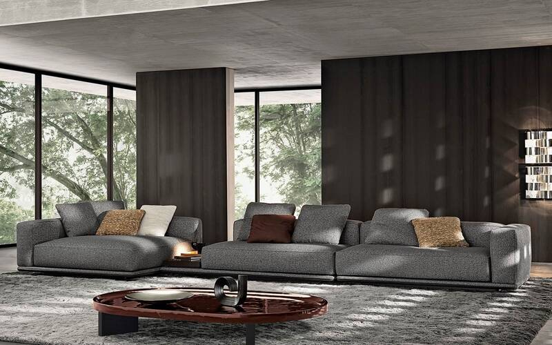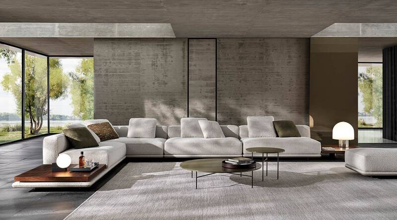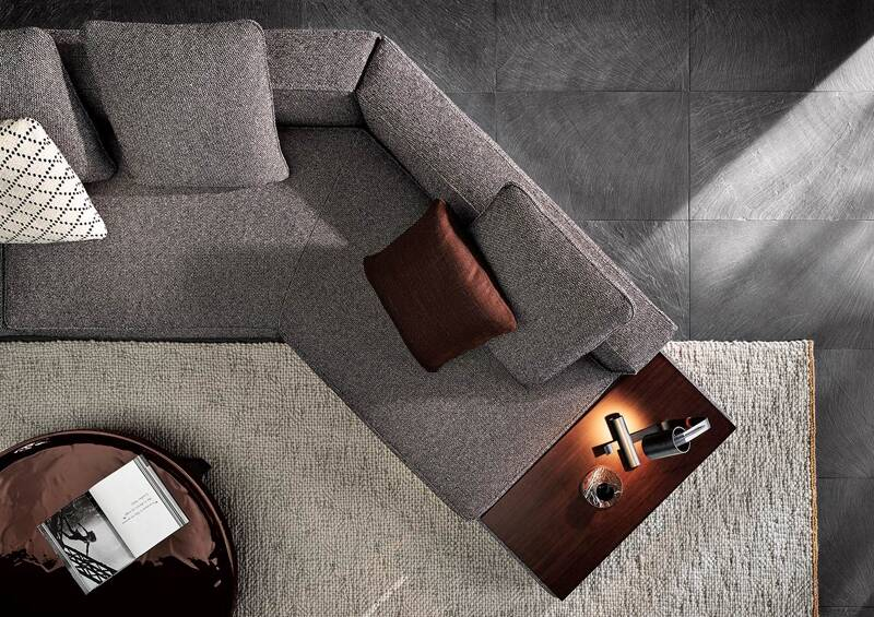 Dessinée par Marcio Kogan / studio mk27 pour Minotti, le système de canapés Horizonte est comme une île flottante aux lignes carrées qui marque l'horizon de l'espace living. Horizonte prend forme à partir d'une base suspendue, une ligne, fine et solide, recouverte de cuir, de tissu ou des deux revêtements à la fois, sur laquelle reposent des rembourrages aux volumes généreux.